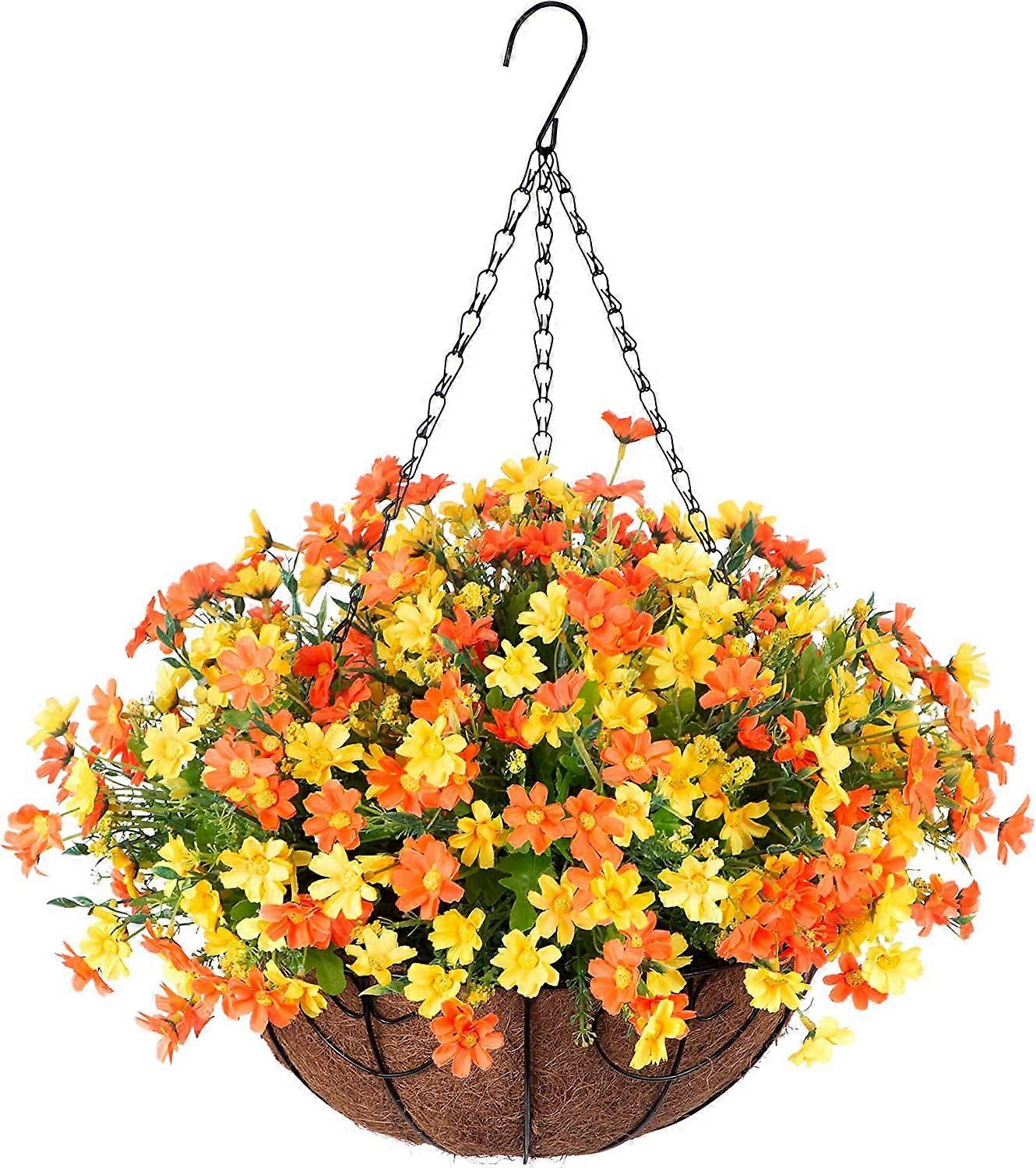 Muchenggift 12” Artificial Daisy Arrangement in Purple Coconut Lining Basket