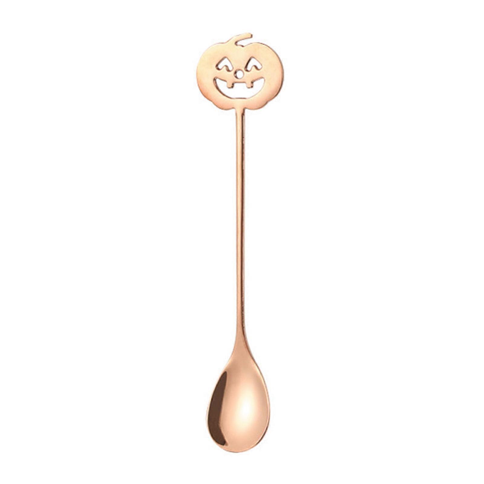 Halloween Coffee Spoon, Stainless Steel Stirrer with Pumpkin Head, Compatible with Halloween Party Dinnerware, Dessert Spoon