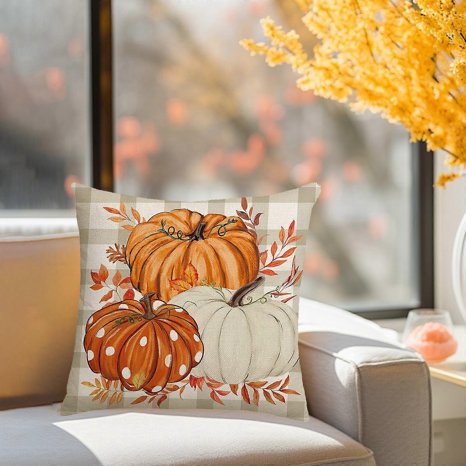 2 Pcs Thanksgiving Gobble Turkey Pumpkin Throw Pillow Covers, 18x18 Inch, Compatible with Harvest Decor, Sofa & Home