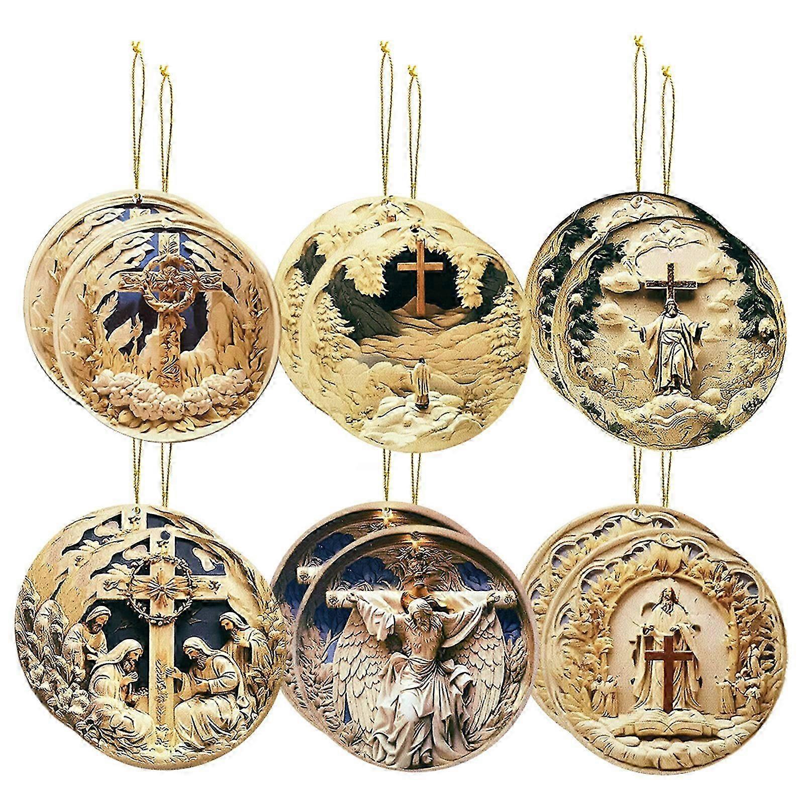 Exquisite 12 Pieces Wood Crafted Pendant Christmas Hanging Accessories for Home and Church Use Nativity Scene Decorations