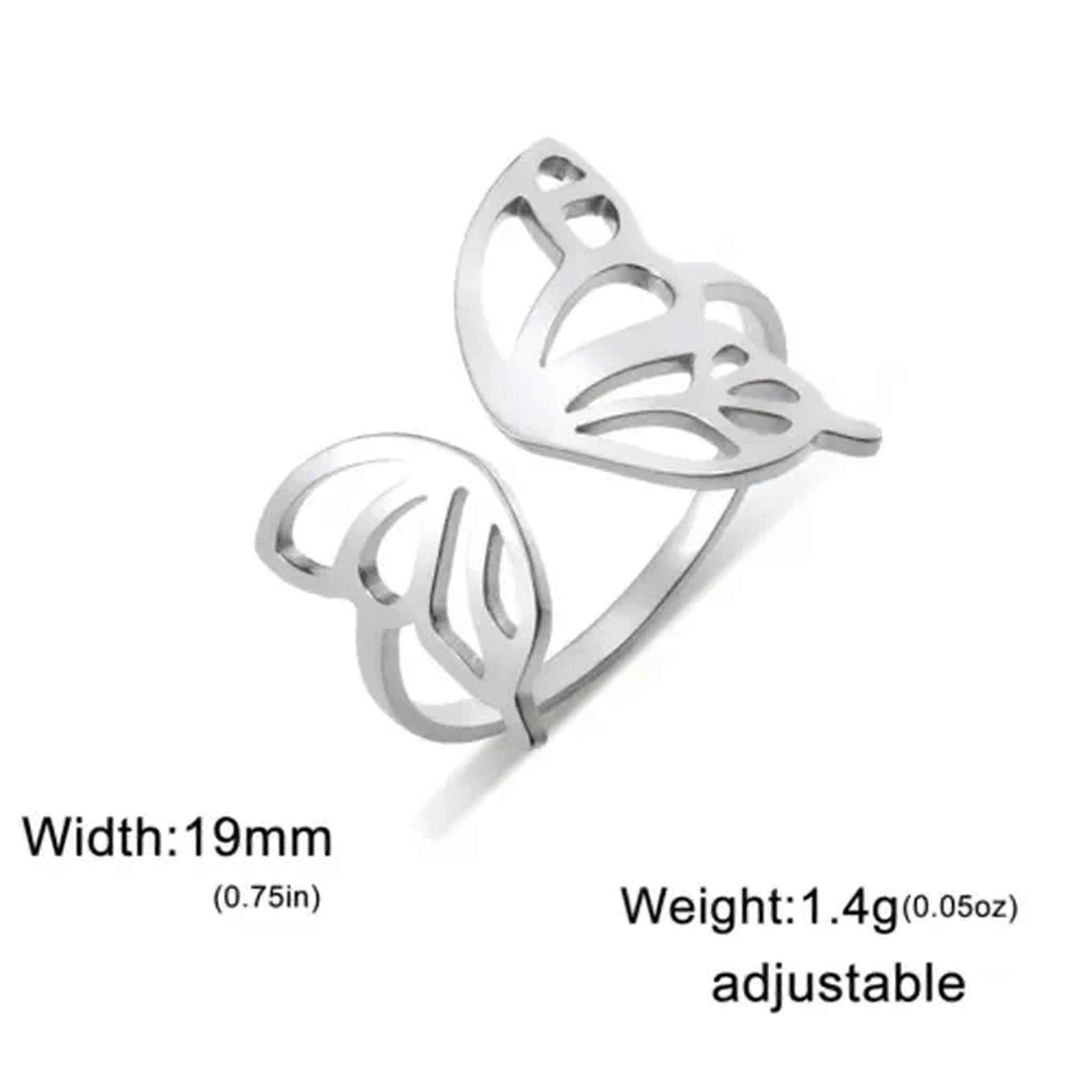 RSAMD Hollow Butterfly Open Ring Stainless Steel Rings Trendy Fashion Bohemian Jewelry-Resizable-steel