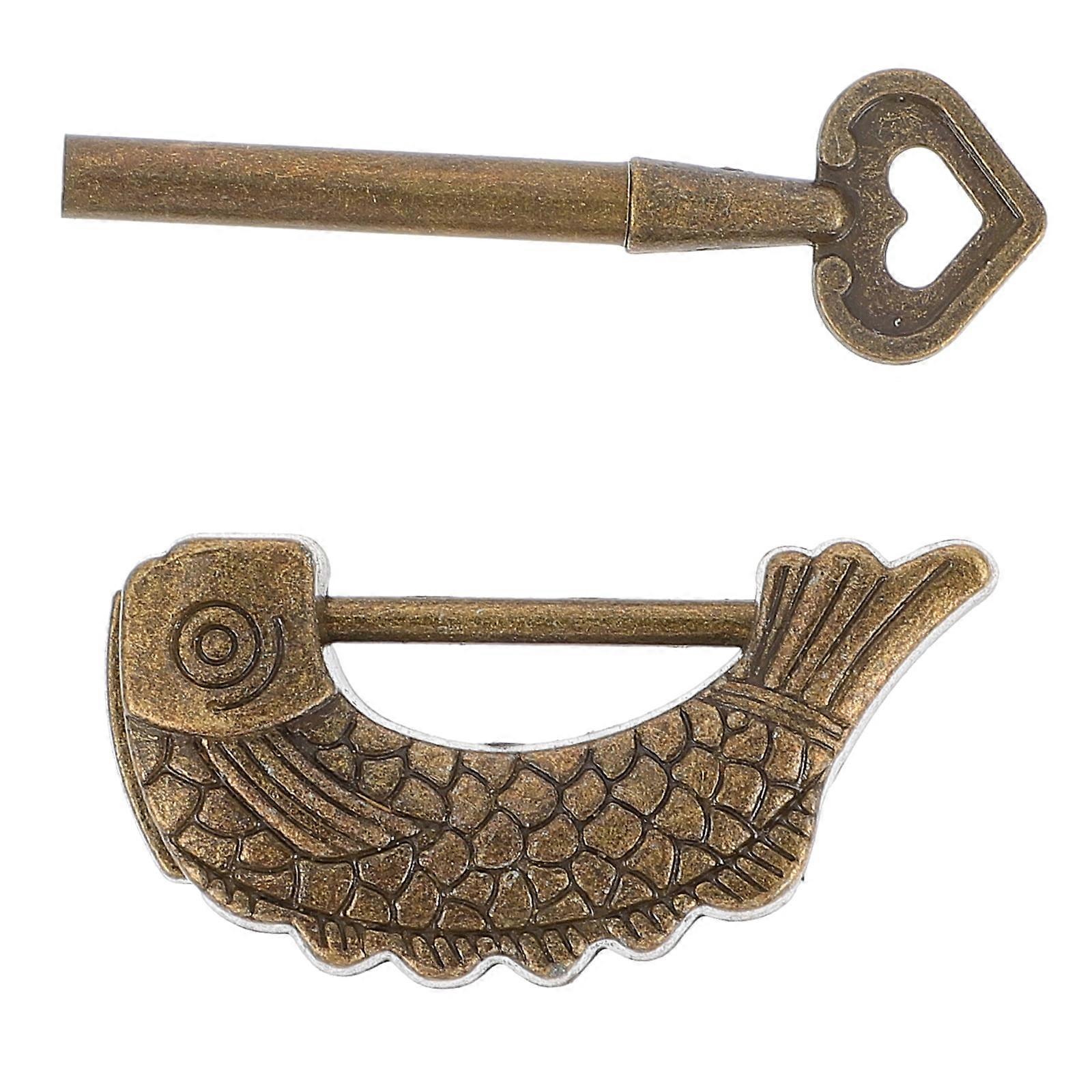 1pc Mini Padlock Fish-shaped Locks Retro Box Lock Jewelry Boxes Padlock with Key