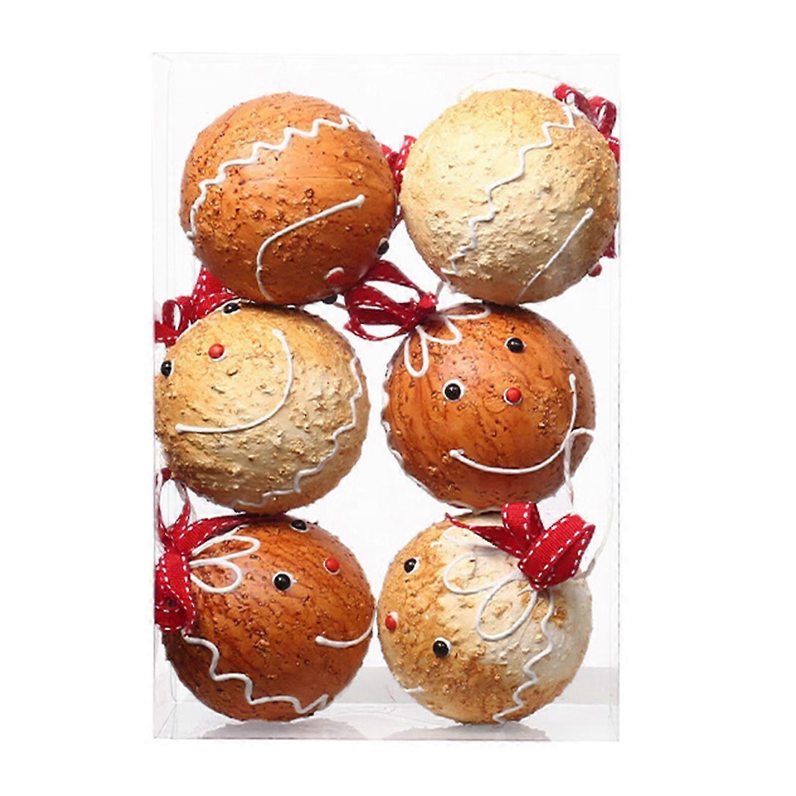 Exquisite Shatterproof Christmas Ornament 6pcs Vibranting Elegant Designs Gingerbreads Theme Christmas Festival Tree Accent Light Yellow