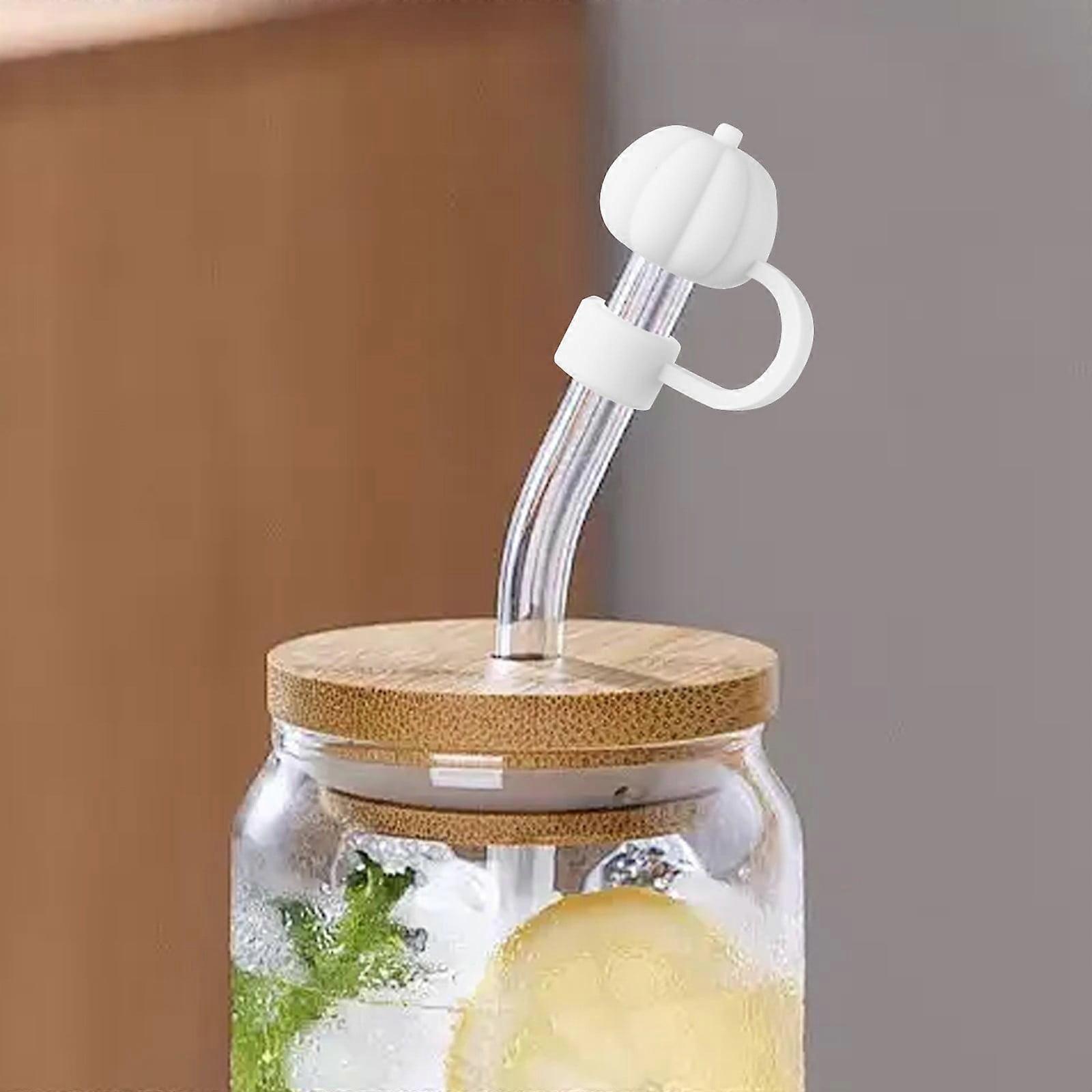 2Pcs Fall Straw Cover Cap, White Pumpkin Silicone Reusable Lid for 10mm Straws, Compatible with 30/40 oz Tumbler Cups, Autumn Thanksgiving