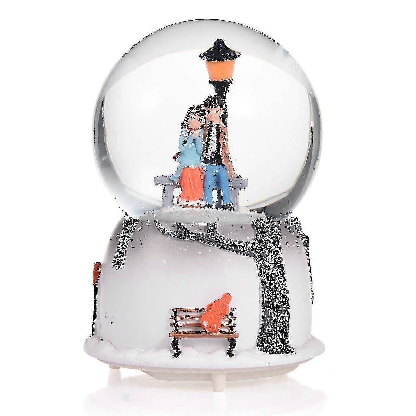 w Romantic Lover Musical Snow Globe LED Couple Crystal Ball Music Box Automatic Snow Spraying Sky City Music Box Valentine s Giftc