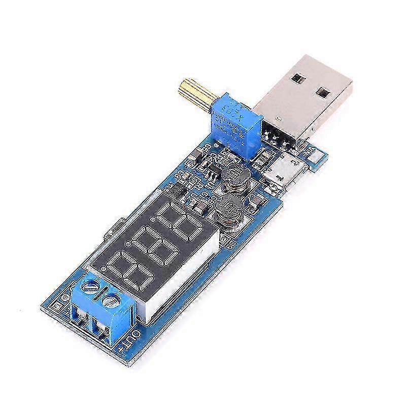 1.Description: USB boost or buck power supply module, powered by USB, adjust potentiometer to get the required voltage. 2.Features: 1>.One button to turn off the output 2>.Supply ON or OFF display screen 3>.Support low power mode 4>.Support sleep mode 5>.Support both standard USB and Micro USB and pads input voltage 6>.Potentiometer with rotating handle. 3.Parameters: 1>.Input voltage: DC 3.5-12V 2>.Output voltage:DC 1.2-24V 3>.Output power: Input 1.2-2V,output power within 2W Input 2V-20V,output power within 3W Input 20V-24V,output power with in 2.5W 4>.Display:3Bit digital tube display 5>.Size:80x20x14mm. 4.Use steps: 1>.Input voltage from Standard USB or Micro USB or VINand and VIN- 2>.Turn ON display screen 3>.Adjust potentiometer to get the required voltage 4>.Connect load. 5.Application: 1>.Ordinary power supply 2>.Battery charger 3>.LED drive power 4>.Instrument voltage display 5>.Test meter 6>.Circuit test 7>.Power conversion. 6.Package include: 1>.1pcs XY-UP USB boost or buck power supply module 7.Note: 1>.It is not a high power supply, please use it within the power range. Note: Due to the light and screen setting difference, the item's color may be slightly different from the pictures. Please allow slight dimension difference due to different manual measurement.
