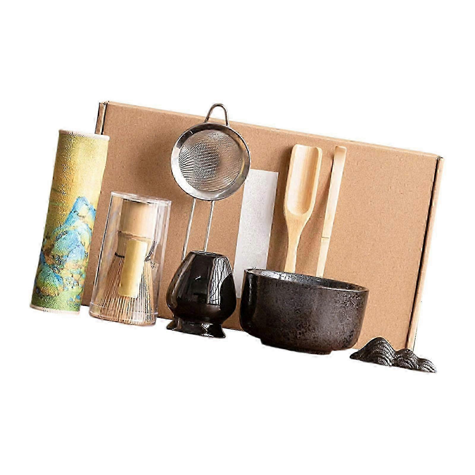 w Complete Japanese Matcha Making Accessories Ceramic Bowls With Wooden Whisk Easy Cleaning Teas Ceremony Essential Multicolor