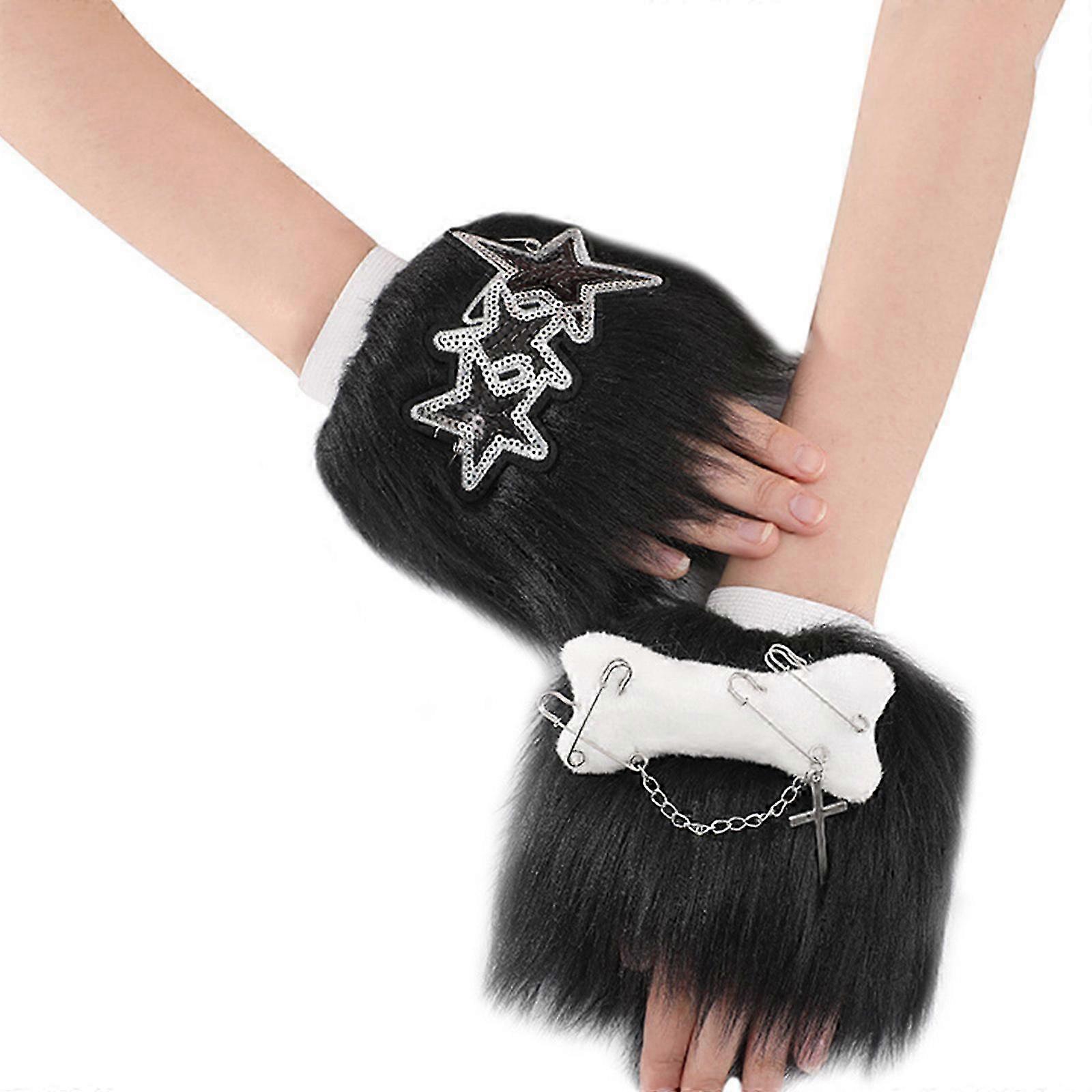 Arm Cuffs for Women Fashion Plush Arm Cuff Sleeves Decorative Wrist Sleeve for Teens Girl Role Play Cuff Warmer Black