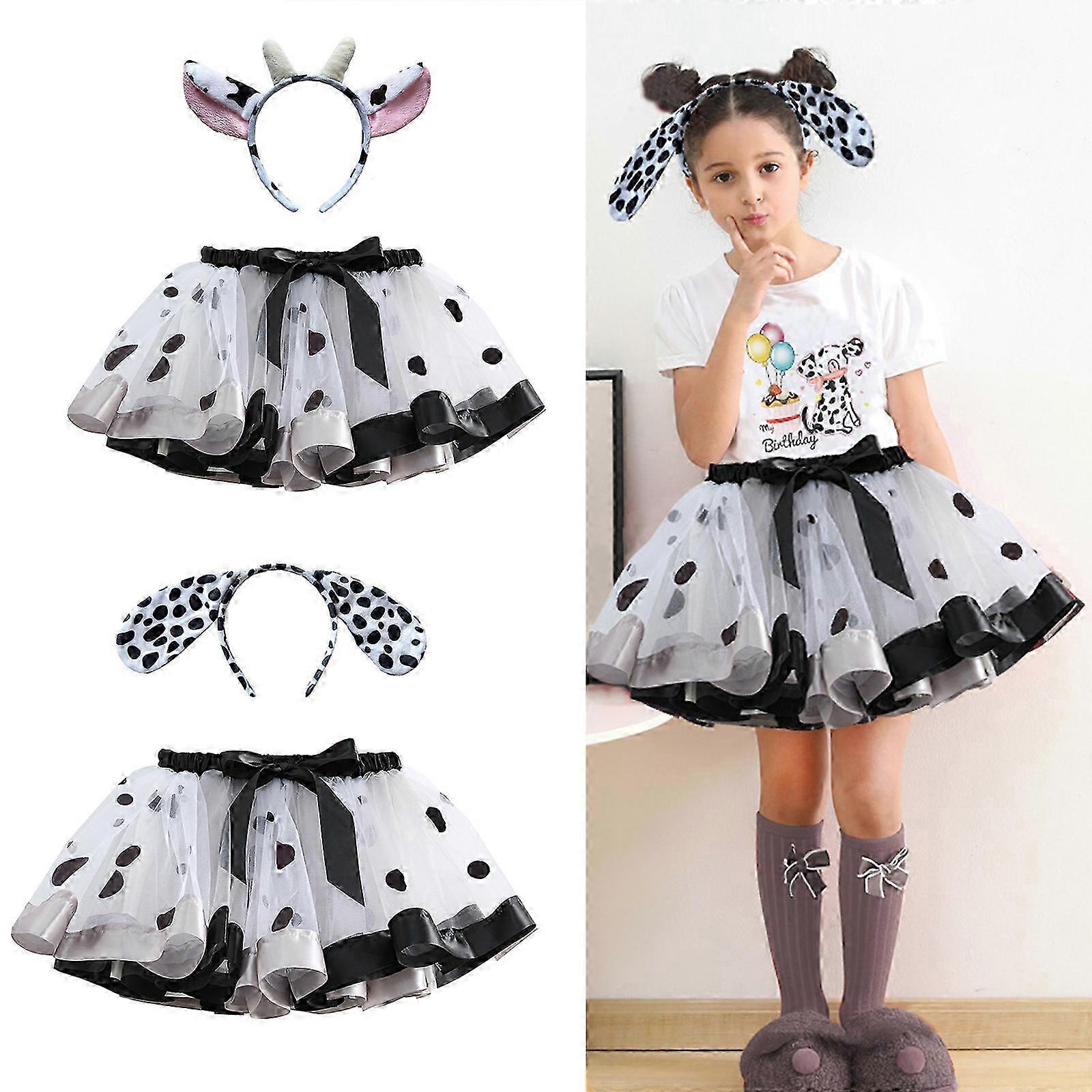 Girls Tutu Skirt with Headband, Trend Stage Performances Short Dress Birthday Party Tulle Skirt for Dance and Party Cow head button set S
