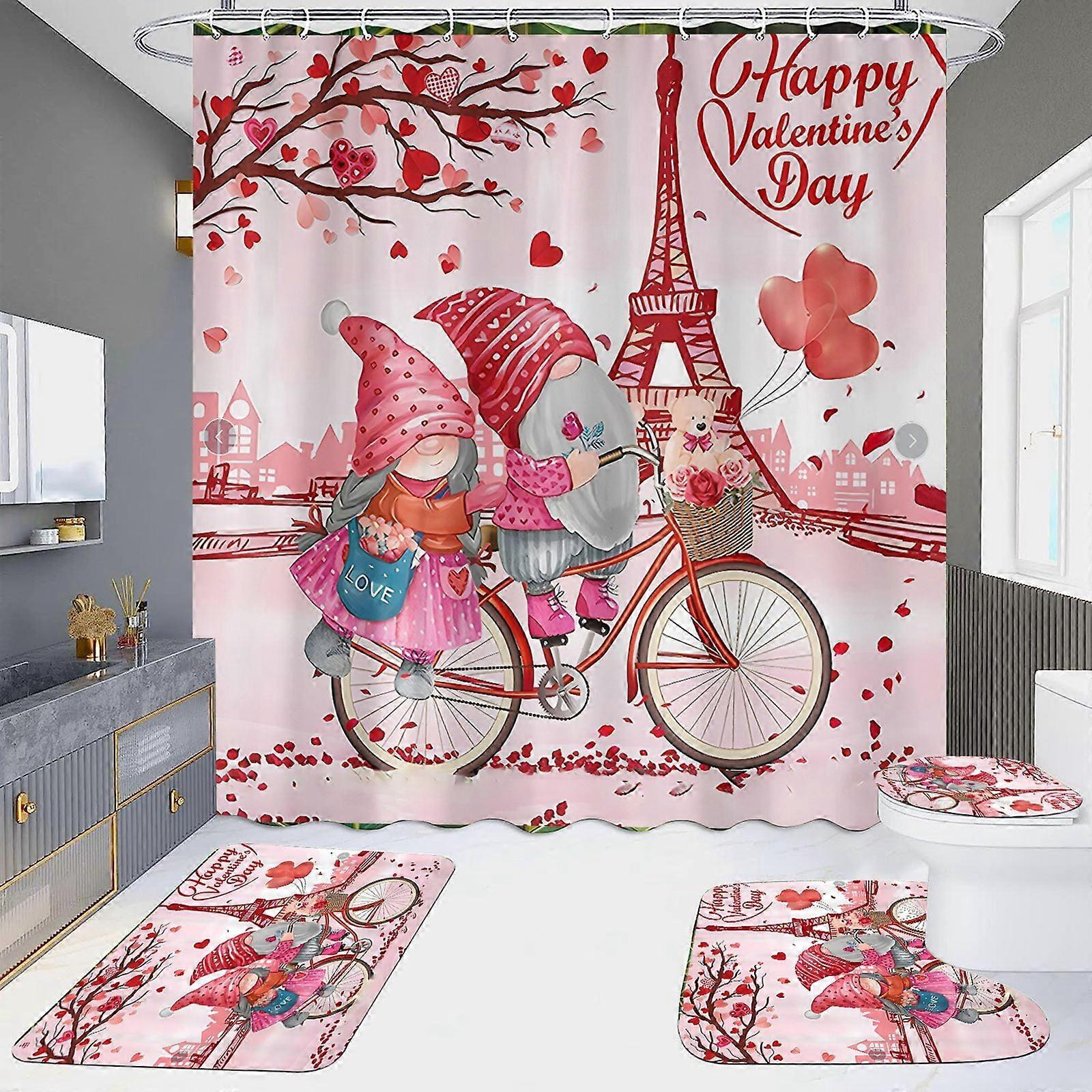 Valentine's Day 4-Piece Bathroom Set (Shower Curtain & Rug) - Couple Shower Curtain Set, Compatible with Dorm & Home