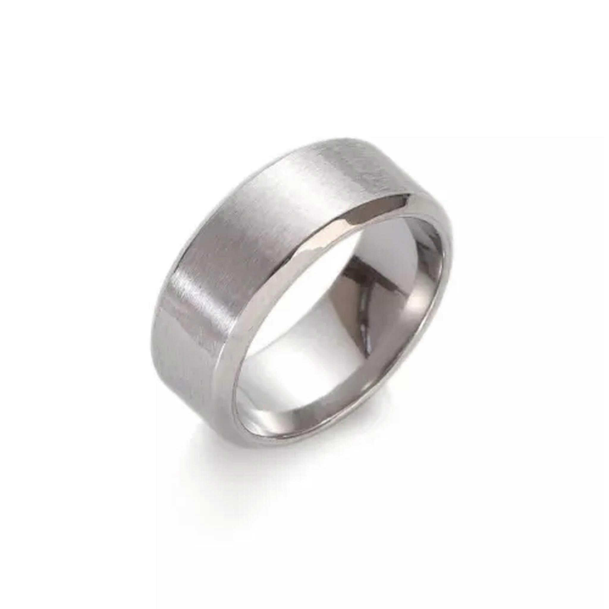 RSAMD 8MM Classic Wedding Ring for Men / Women Stainless Steel Black Band Ring Jewelry-Silver-12
