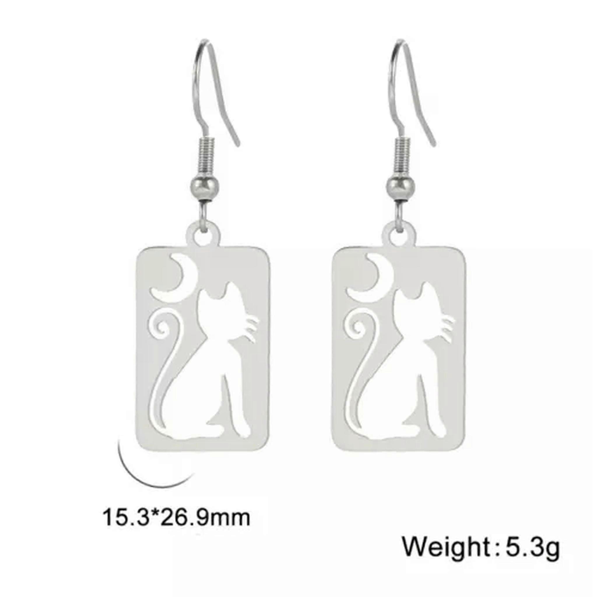 RSAMD Moon Cat Earrings Women Rectangle Hollow Out Stainless Steel Earring Jewelry-Steel