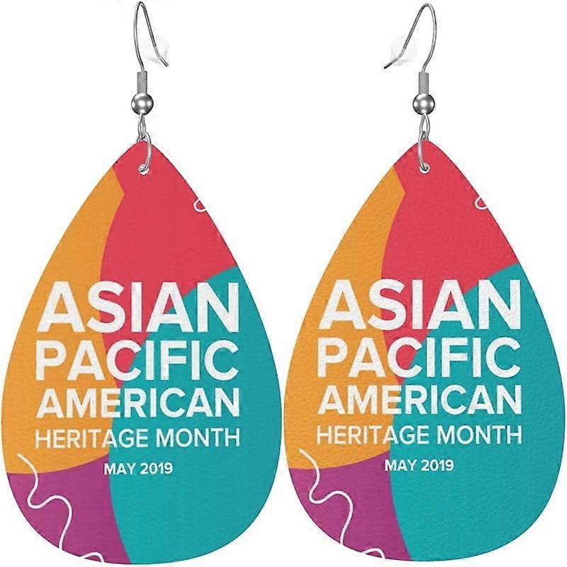 Asian American And Pacific Islander Heritage Month Earrings for Women,Teardrop Dangle, Faux Leather Earrings,Eardrop,Silvering Hoop