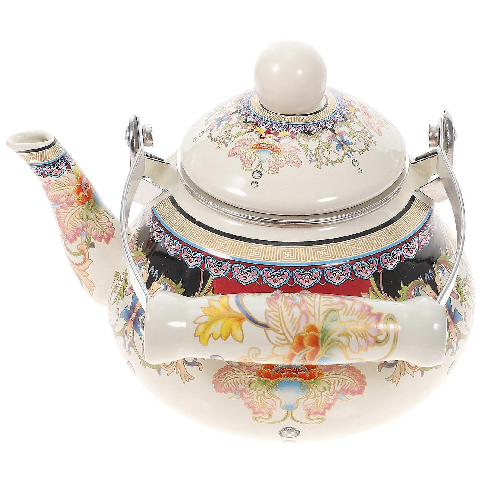 Stainless Steel Coffee Filter Teapot Enamel Decorative Glass Water Pitcher with Lid Kettle Floral