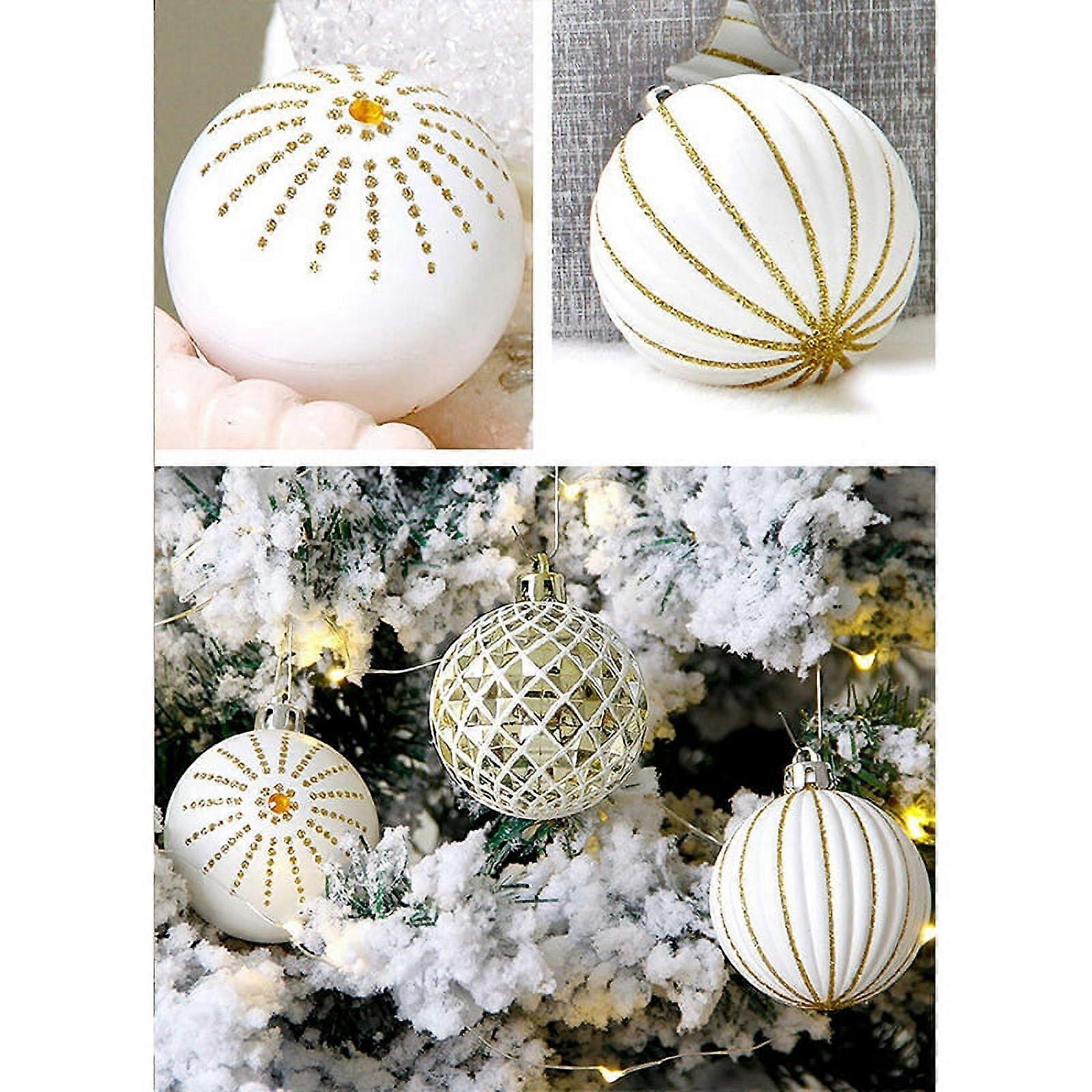 30PCS Christmas Balls 60MM Gold&White Painted Shatterproof Festive Wedding Hanging Ornaments Christmas Trees Decoration Durable