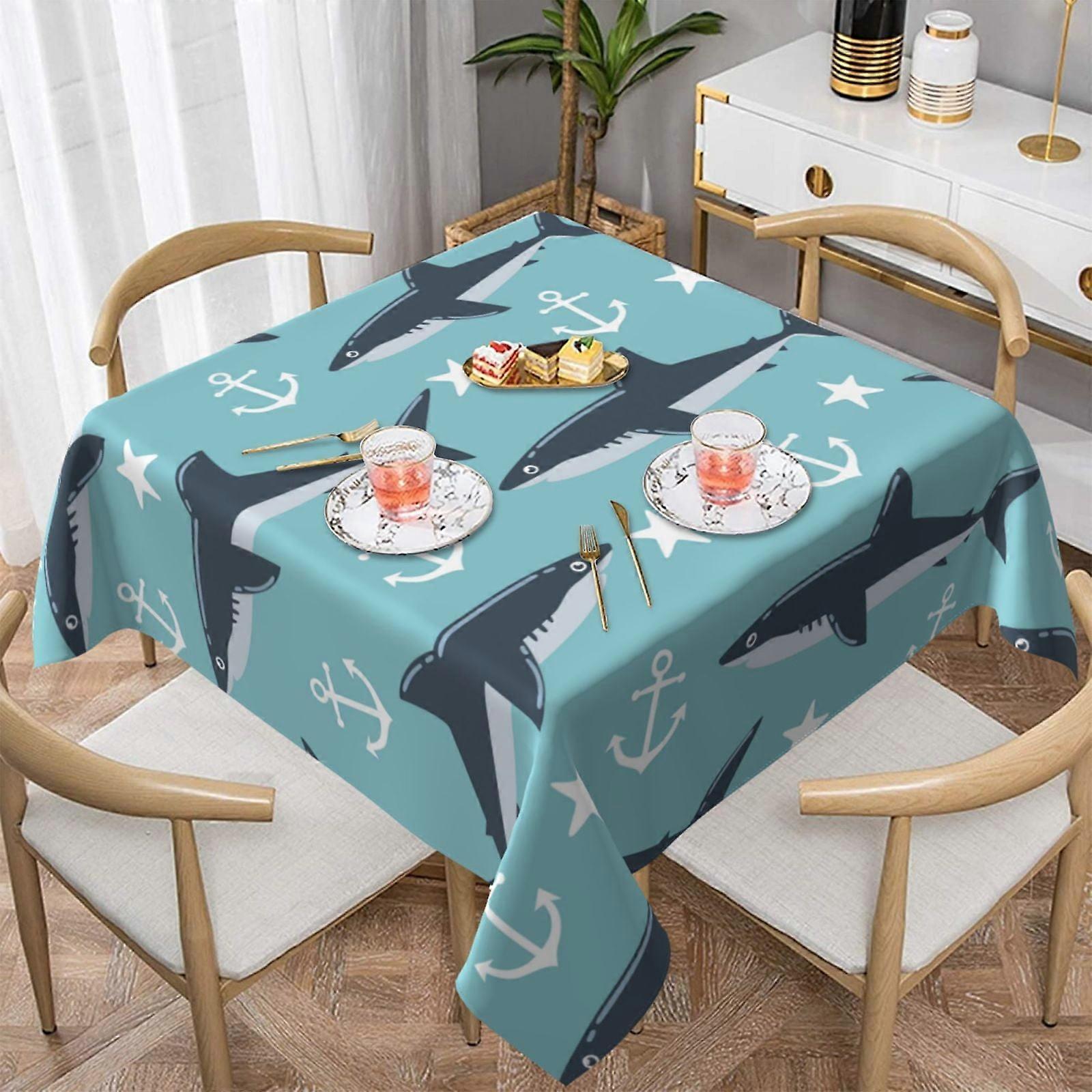 Shark Nautical Funny Anchor Square Tablecloth Washable Table Cloth Decorative Table Cover for Wedding Party Dining Festival 54"x54"