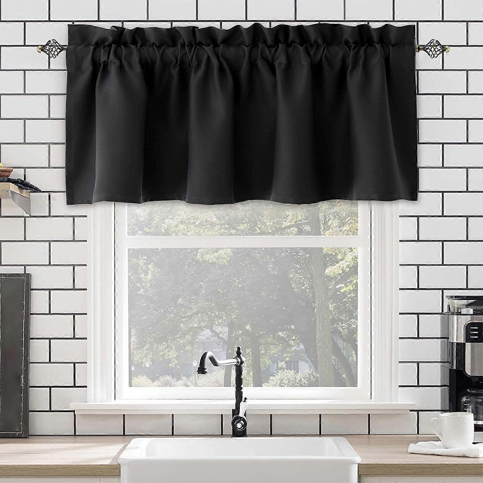 Black Out Kitchen Curtains 57×18", compatible with kitchen valance, blackout window curtain, energy efficient thermal darkening drape