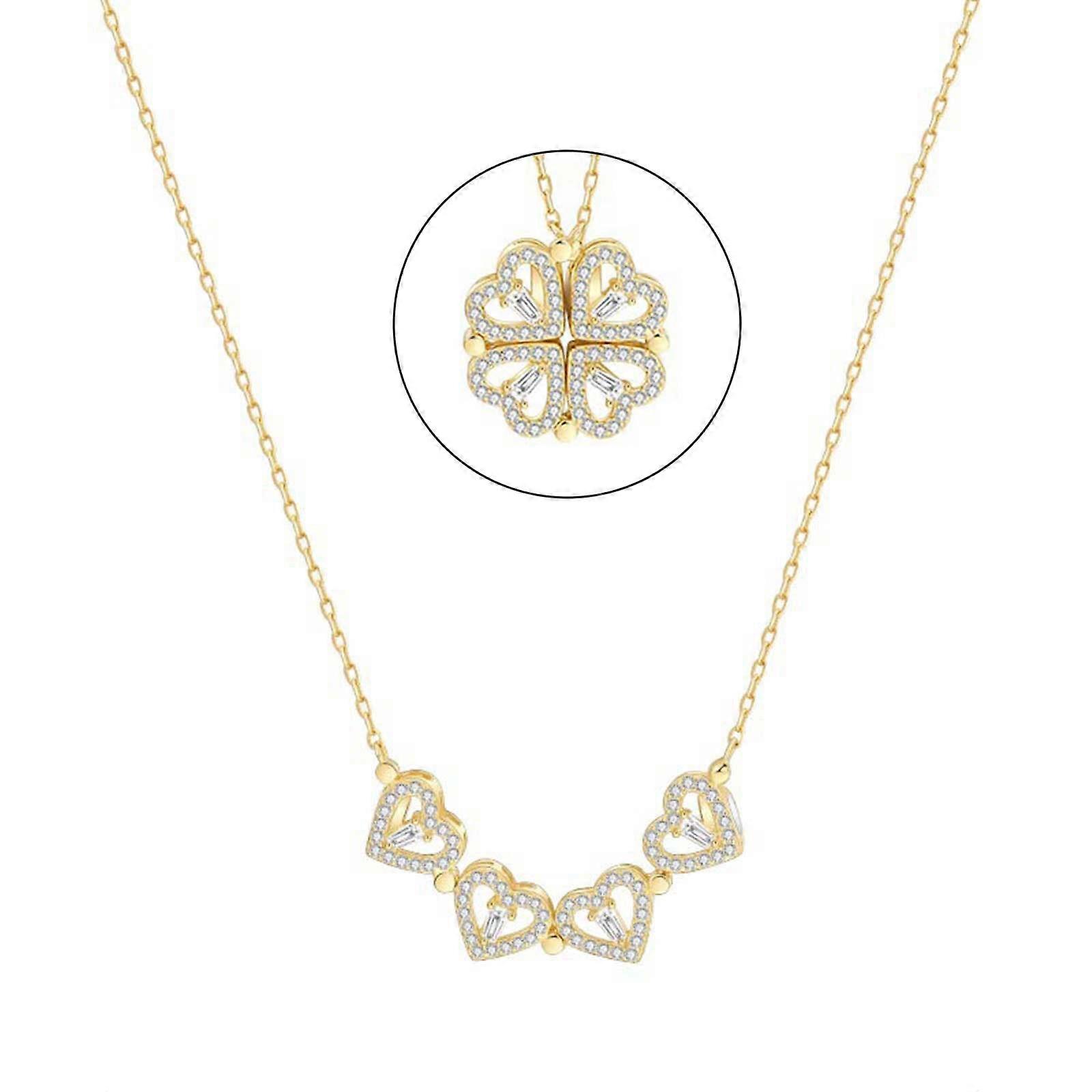 Dual Wearing Heart Necklace Convertible Four Leaf Clover Pendant High-end Chain Crystals Jewelry Fiting for Girls Women Multicolor