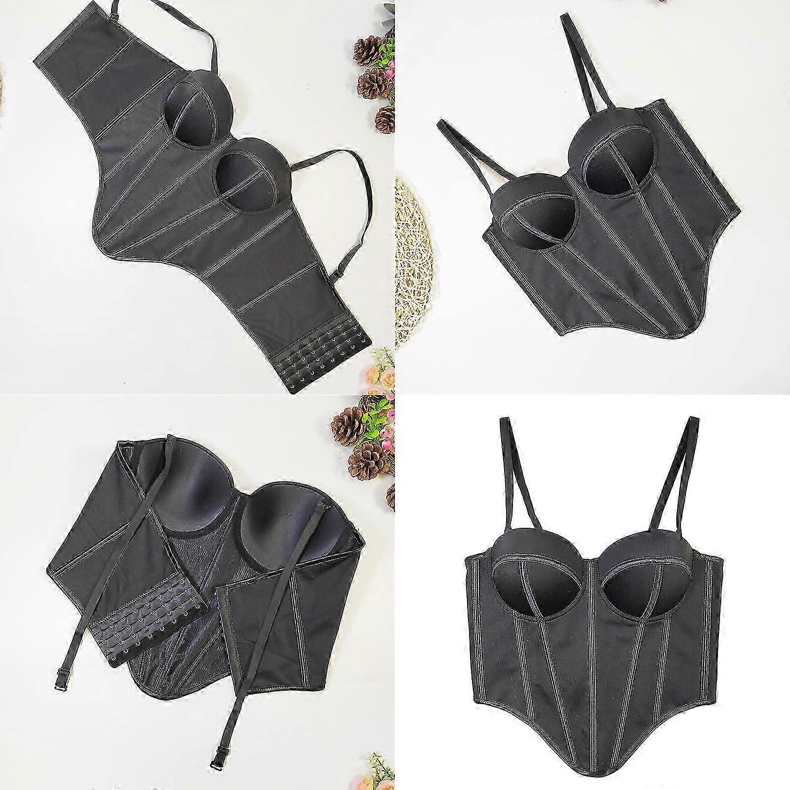 Women's Solid Color Push Up Asymmetrical Bustier Crop Top Club Party Spaghetti Strap Underwire Fishbone Corset Bra Vest 34 Purple