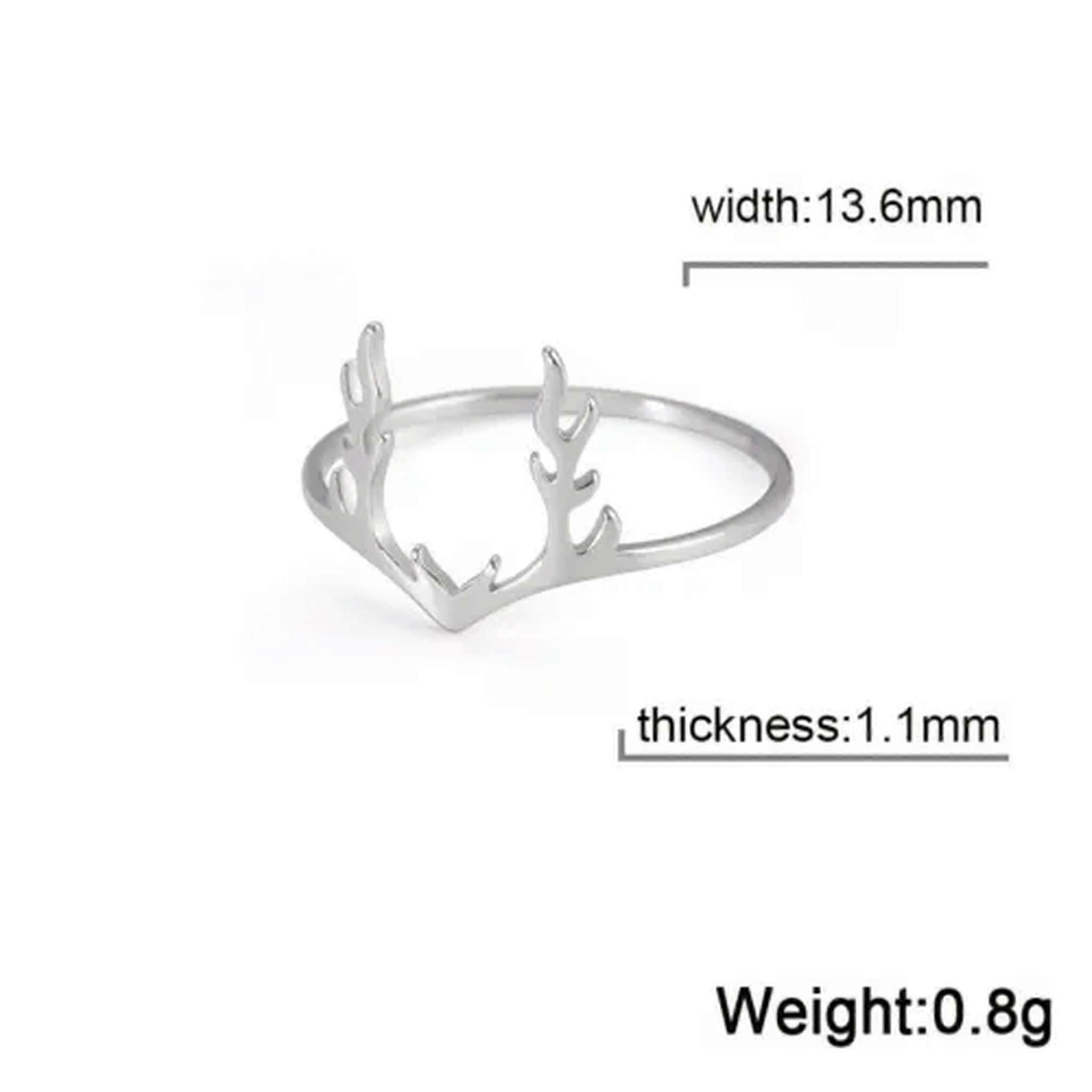 RSAMD Elk Antlers Ring Women's Stainless Steel Deer Horn Finger Rings Jewelry Gift-6-Silver