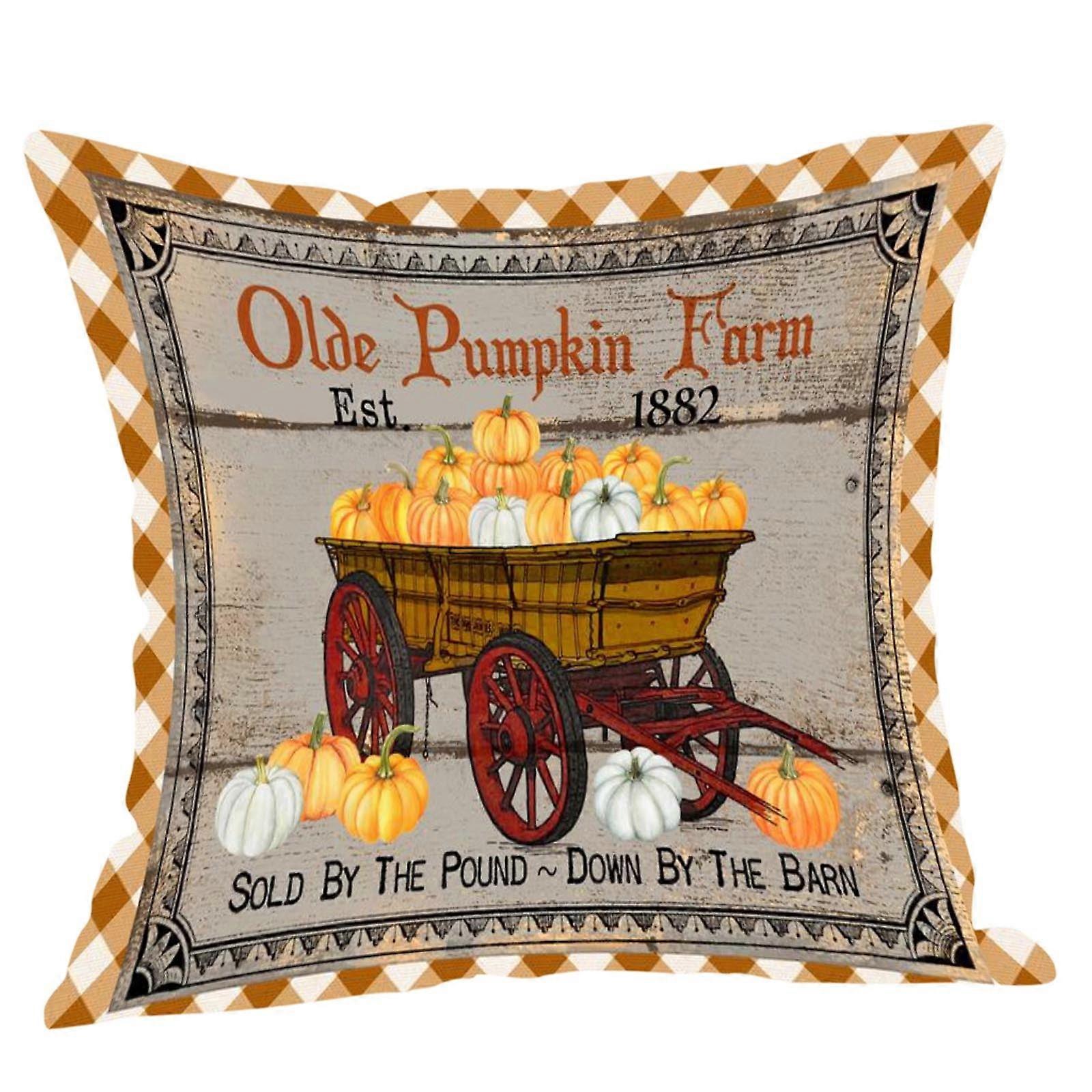 2 Pcs Halloween Pillow Covers 17.7" Ghost Pumpkins Linen Case Compatible with Holiday Farmhouse Decor for Sofa, Indoor Outdoor Use