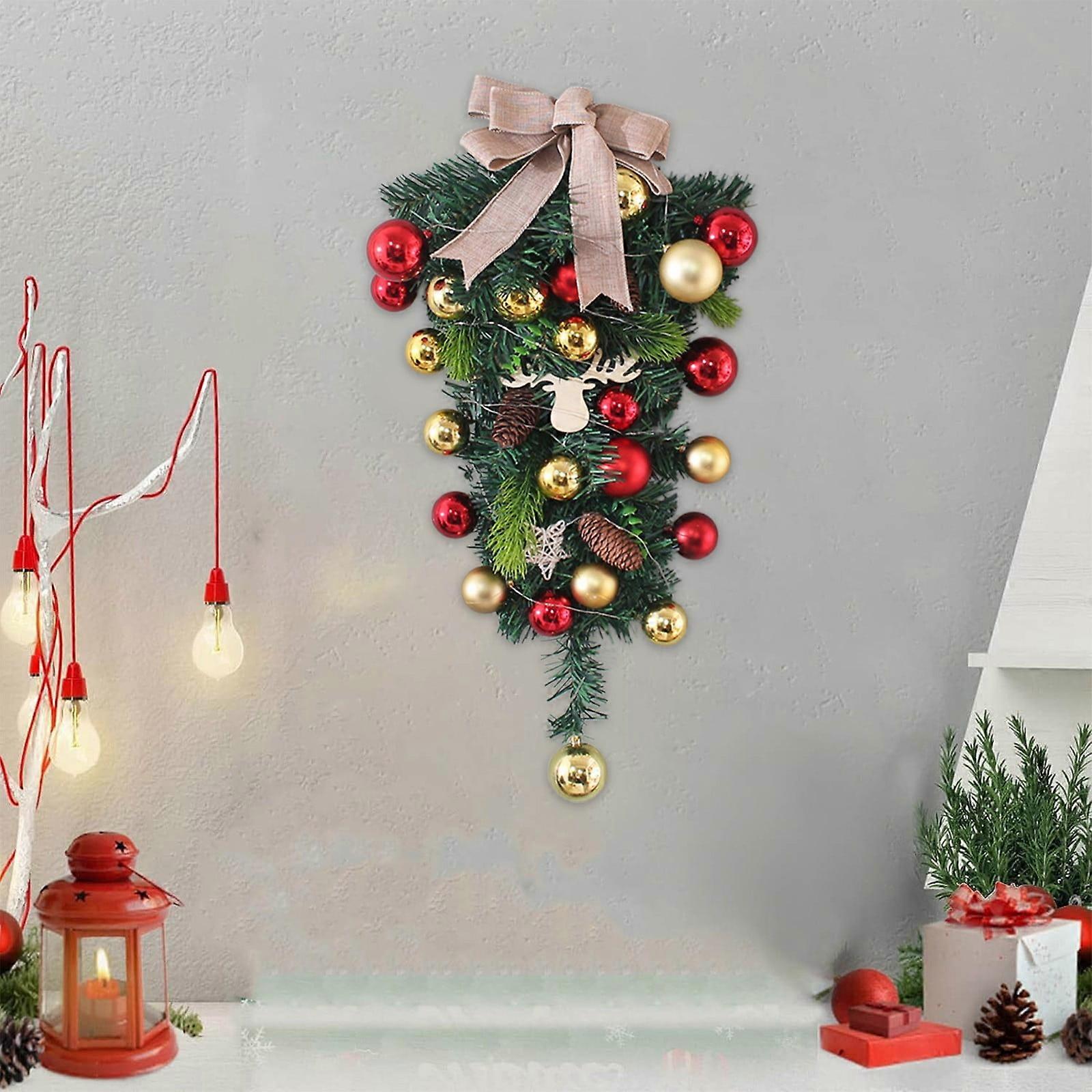Christmas 50cm Inverted Tree Rattan Garland Wall Door And Window Hangings Outdoor Patio Christmas Decorations ✿Features: ✿Festive Design with Bow Detail: Enhance your holiday decor with this teardrop shaped Christmas swag, featuring a stylish bow in checkered or natural fabric, creating a warm and inviting look. ✿Available in Multiple Styles: Choose from three unique designs with different colored ornaments and bow styles, making it easy to match any holiday decor theme. ✿Natural Looking Berry Elements: Crafted with realistic foliage, red berries, and pinecones, this decoration brings a fresh, feel to your festive decorations. ✿Ideal for Doors, Glass Panels, and Walls: Suitable for various spaces like doors, glass panels, walls, or fireplaces, this Christmas hanging decoration complements both indoor and covered outdoor areas. ✿easy to Hang and Store: Lightweight and compact, this holiday swag is easy to display and can be stored conveniently for use in future seasons. ✿Crafted for Use: Made with sturdy materials, this decoration is built to last throughout the holiday season, adding cheer to your space for years to come. ✿Product Description: ✿Quantity:1pc ✿Color:green ✿Material Fabric:Plastic ✿Product sizes:50cm/19.69in ✿Package sizes:45x12cm/17.71x4.72in ✿Net weight: 400g/ 0.88lb ✿Gross weight:450g/ 0.99lb ✿ ✿ Festive Design with Bow Detail: Enhance your holiday decor with this teardrop shaped Christmas swag, featuring a stylish bow in checkered or natural fabric, creating a warm and inviting look. ✿ Available in Multiple Styles: Choose from three unique designs with different colored ornaments and bow styles, making it easy to match any holiday decor theme. ✿ Natural Looking Berry Elements: Crafted with realistic foliage, red berries, and pinecones, this decoration brings a fresh, feel to your festive decorations. ✿ Ideal for Doors, Glass Panels, and Walls: Suitable for various spaces like doors, glass panels, walls, or fireplaces, this Christmas hanging decoration complements both indoor and covered outdoor areas. ✿ easy to Hang and Store: Lightweight and compact, this holiday swag is easy to display and can be stored conveniently for use in future seasons.