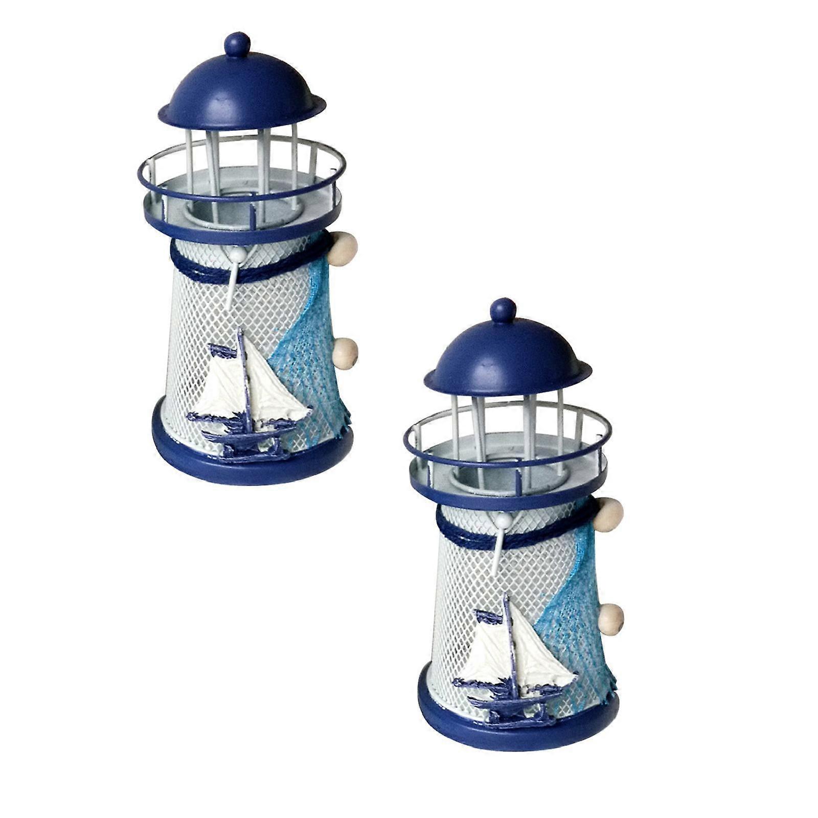Xubond Candle, Mediterranean Lighthouse Iron Candle Candlestick Blue White Home Table Decor Candles, Home Decor