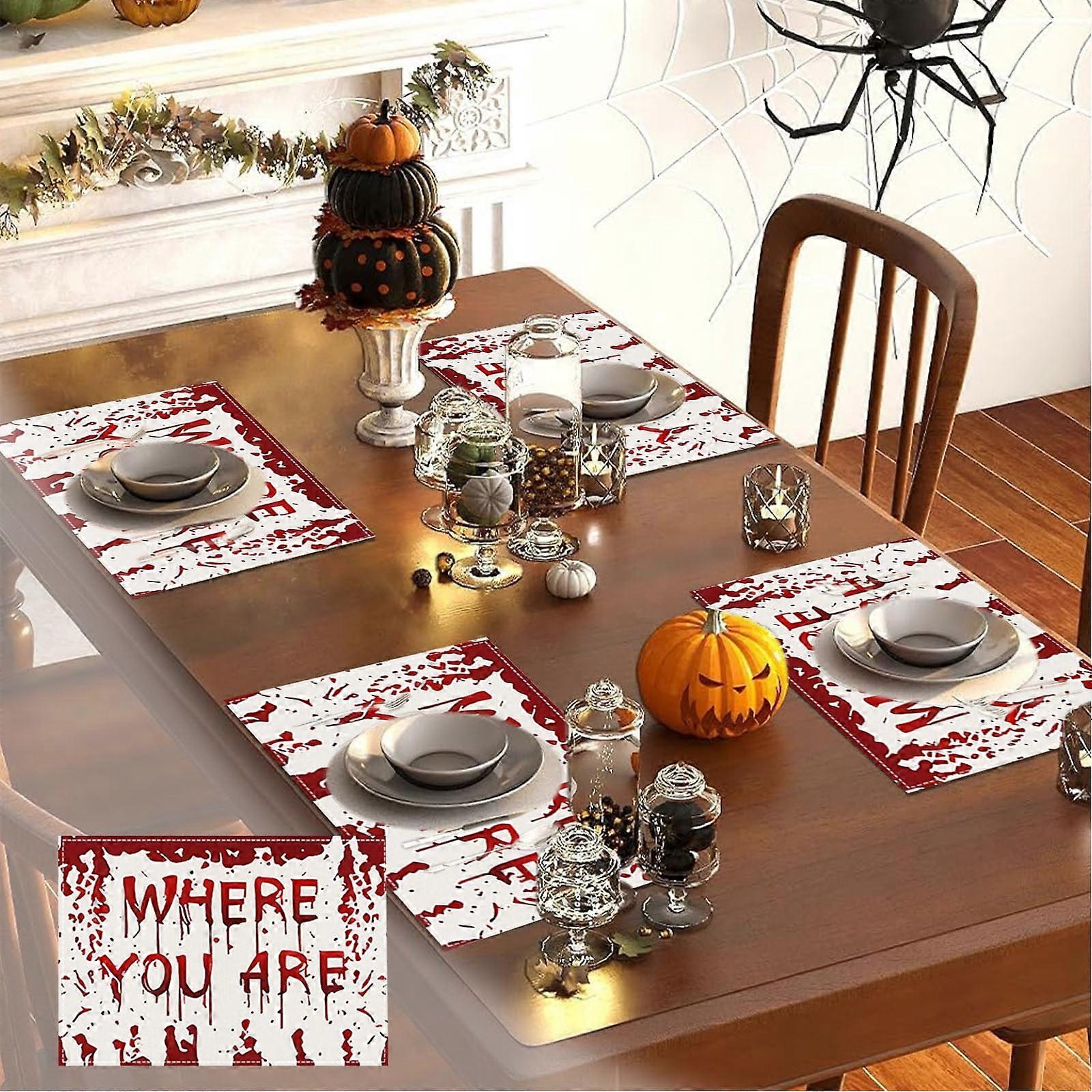 Halloween Graffiti Placemat, Red Letter Linen Table Mat, Border Home Table Decoration, Insulation Mat, Compatible with FloHua