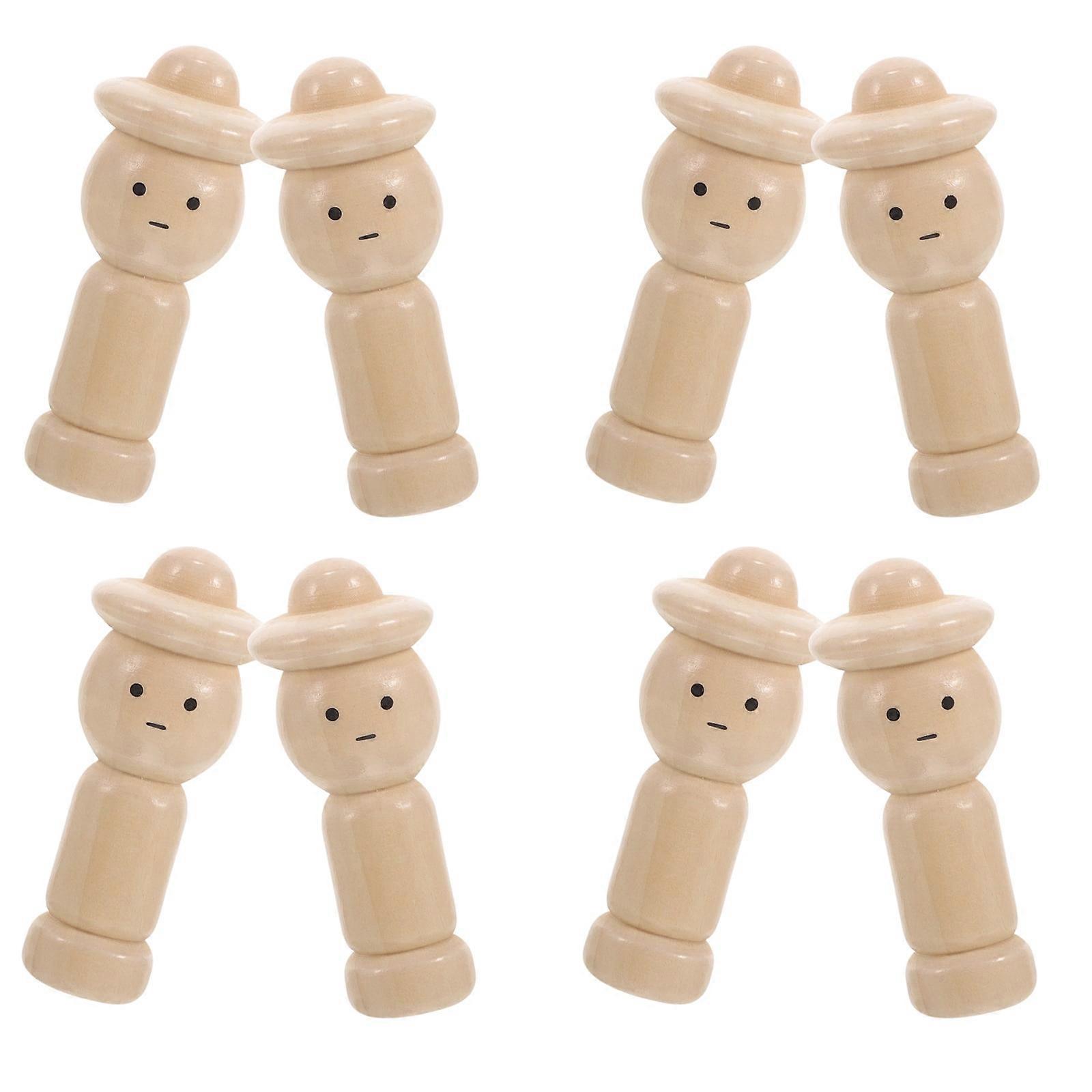 10 Pcs Small Wooden Doll Puppet Blank Peg Kids Painting Dolls Decorative Toys Child