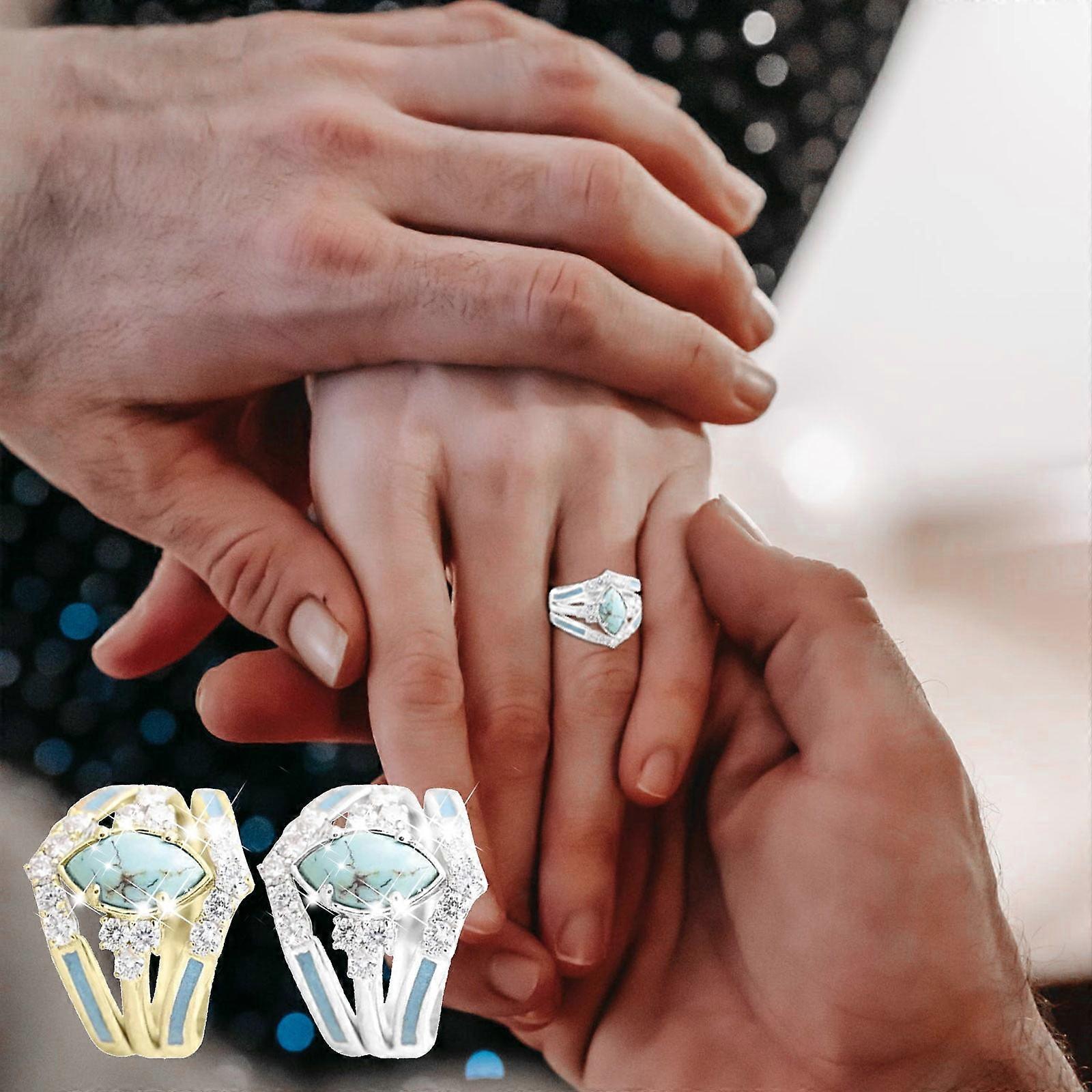 Jacenvly 2024 Wedding Ring Sets Clearance, 3Pcs Natural Turquoise Diamond Jewelry Set, Mother's Day Gift, compatible with gold organizer