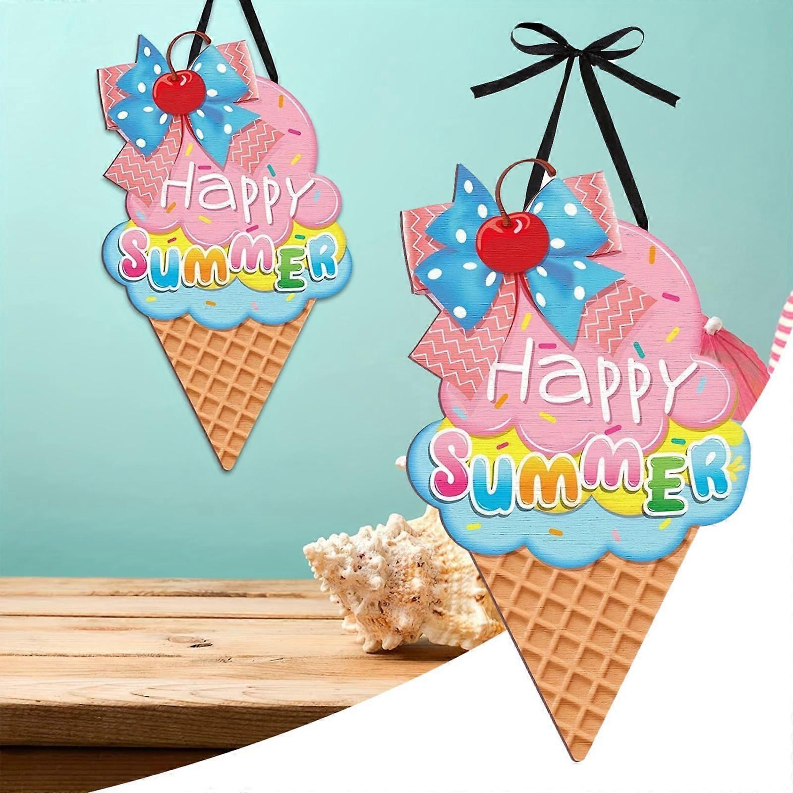 Yakbaofuo Wood Hanging Sign - Sweet Summer Ornaments, Ice Sandbeach Decor, Happy Summer Door Wall Window Hanging for Holiday Party Home Decor