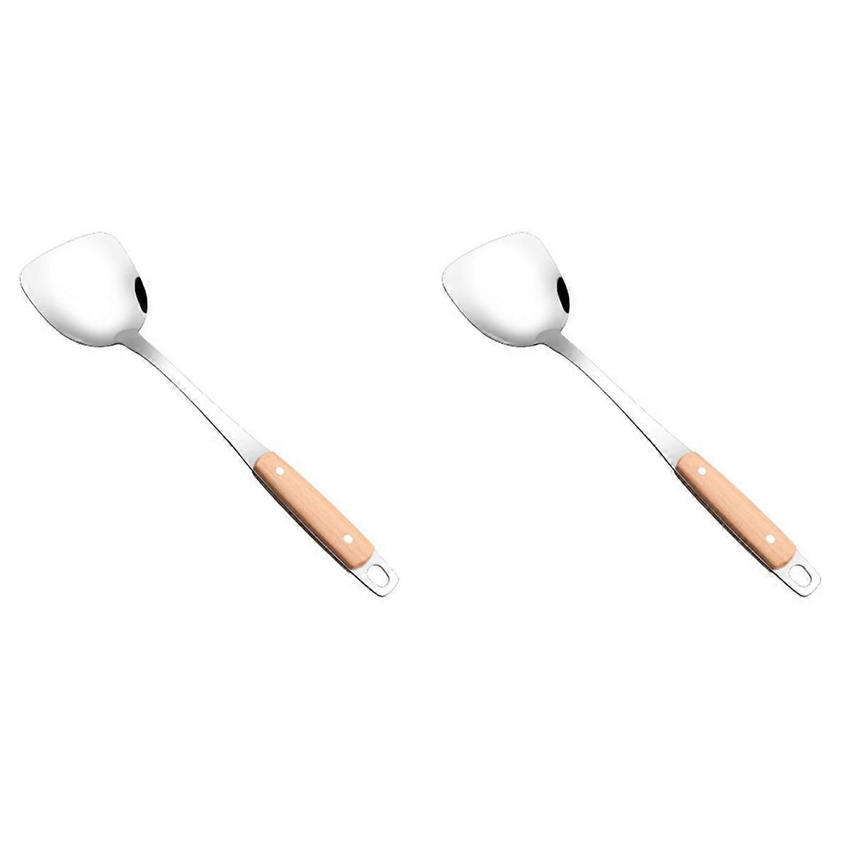 Cooking Spatulas Pancake Stainless Cookware Wooden Handle High Temperature Resistance Bamboo 2 PCS