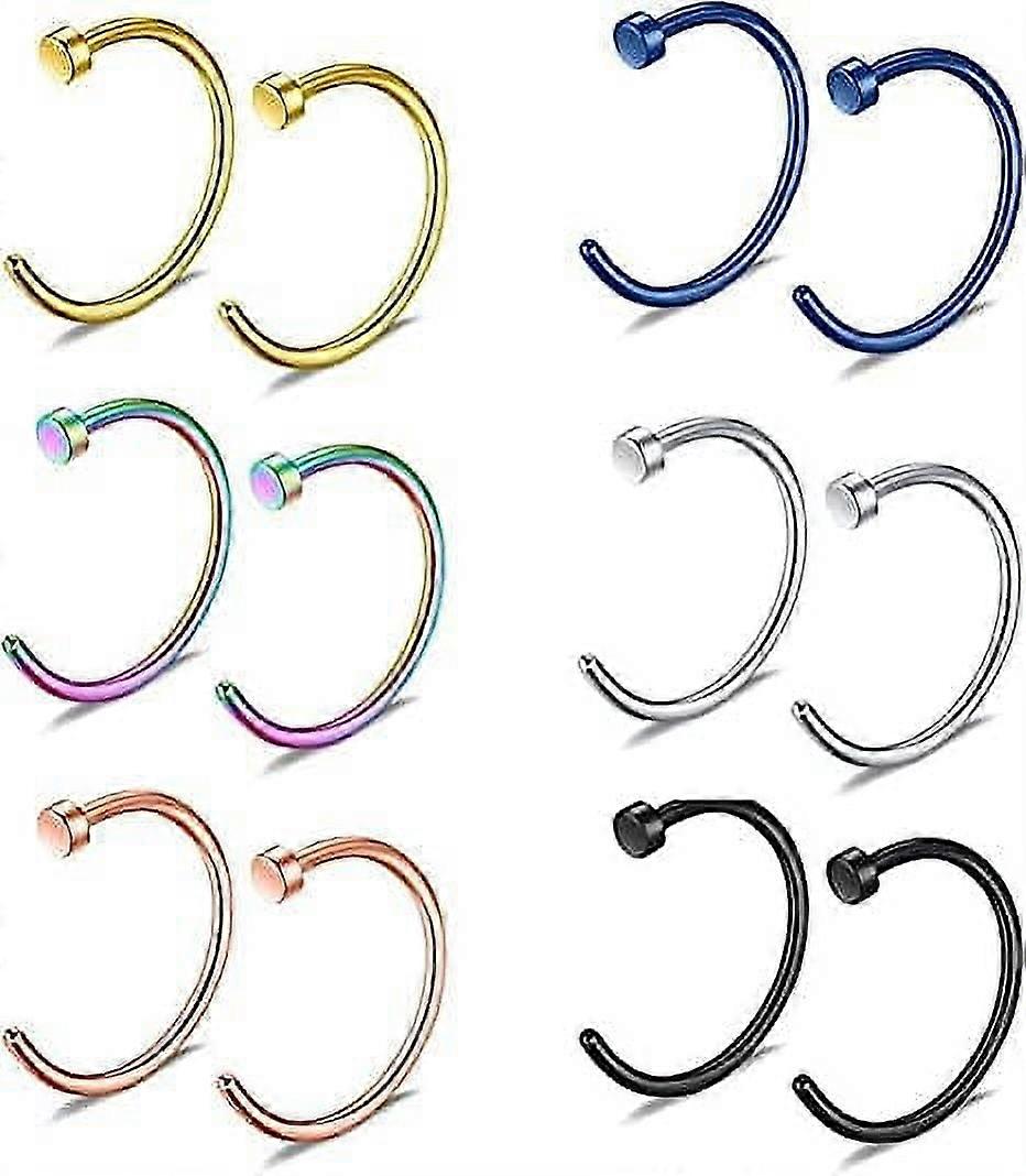 Cterwk 12Pcs Fake Nose Ring 20G Stainless Steel Piercing Hoop Jewelry 8mm Fake Nose Ring Hoop for Women Men
