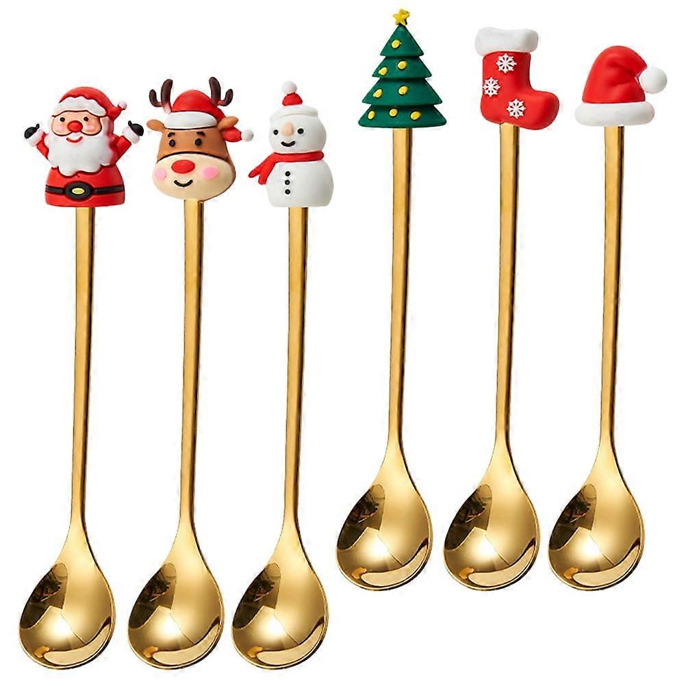 6 Pcs Christmas Stainless Steel Tableware Dessert Spoon Coffee Spoon (Christmas Doll Golden Spoon Six-piece Set-red Box)