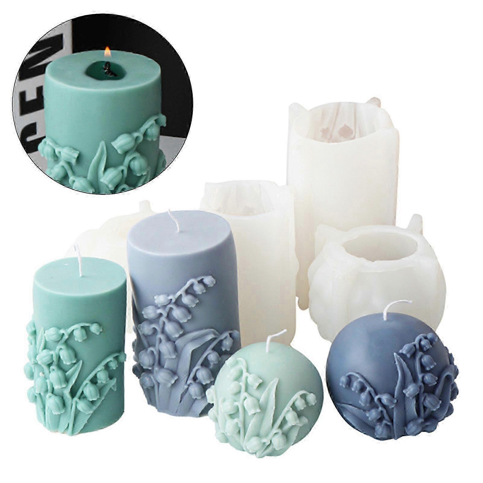 Cylinder/Sphere Anaglyph Epoxy Silicone Mould Candlestick 3D-Casting Mold Craft Candle Holder Convallaria Majalis Mould small