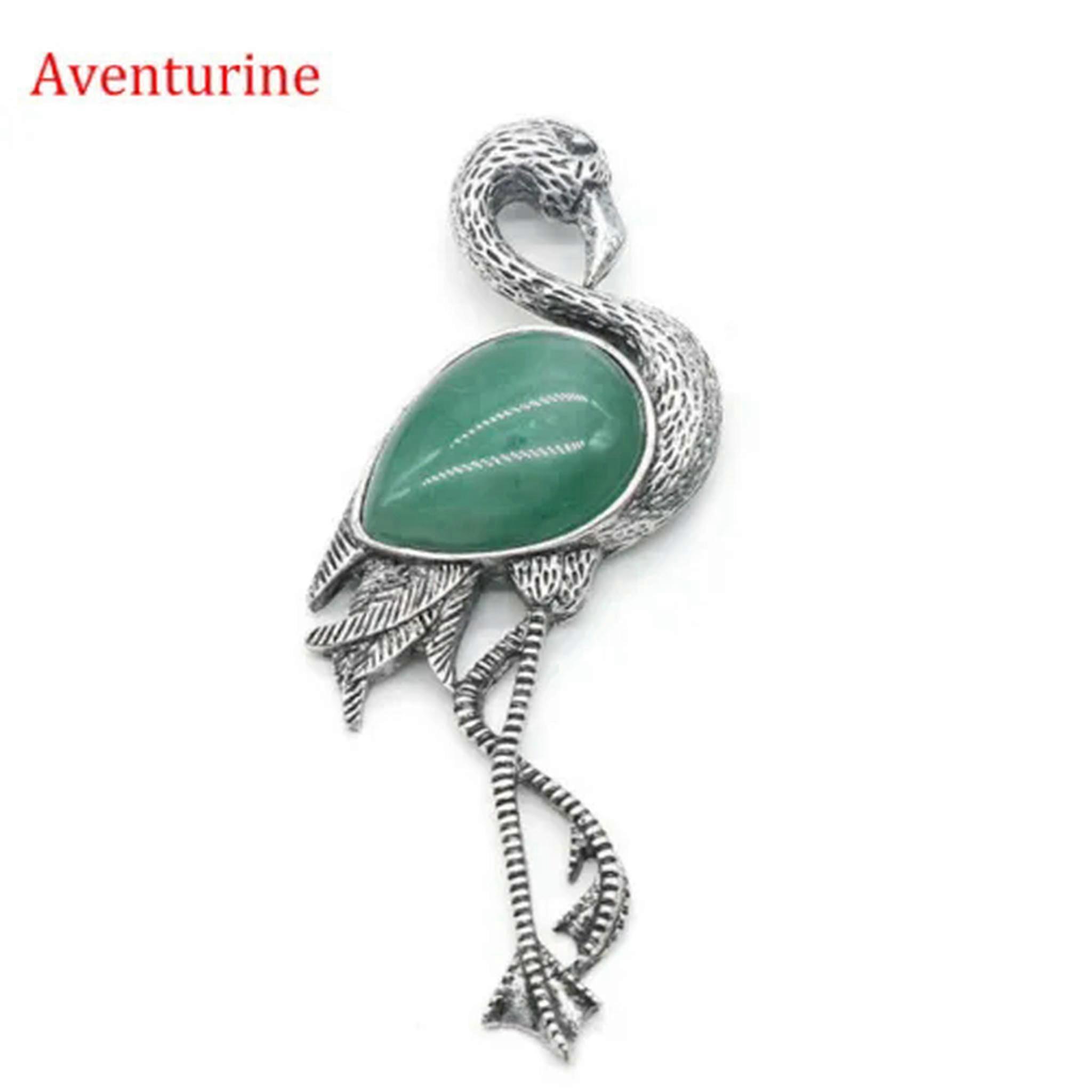 RSAMD 1X Flamingo Crystal Brooch Pendant Pin Chakra Agate Stone Animal DIY Gift Skull-1PC (Random Pick)-Aventurine