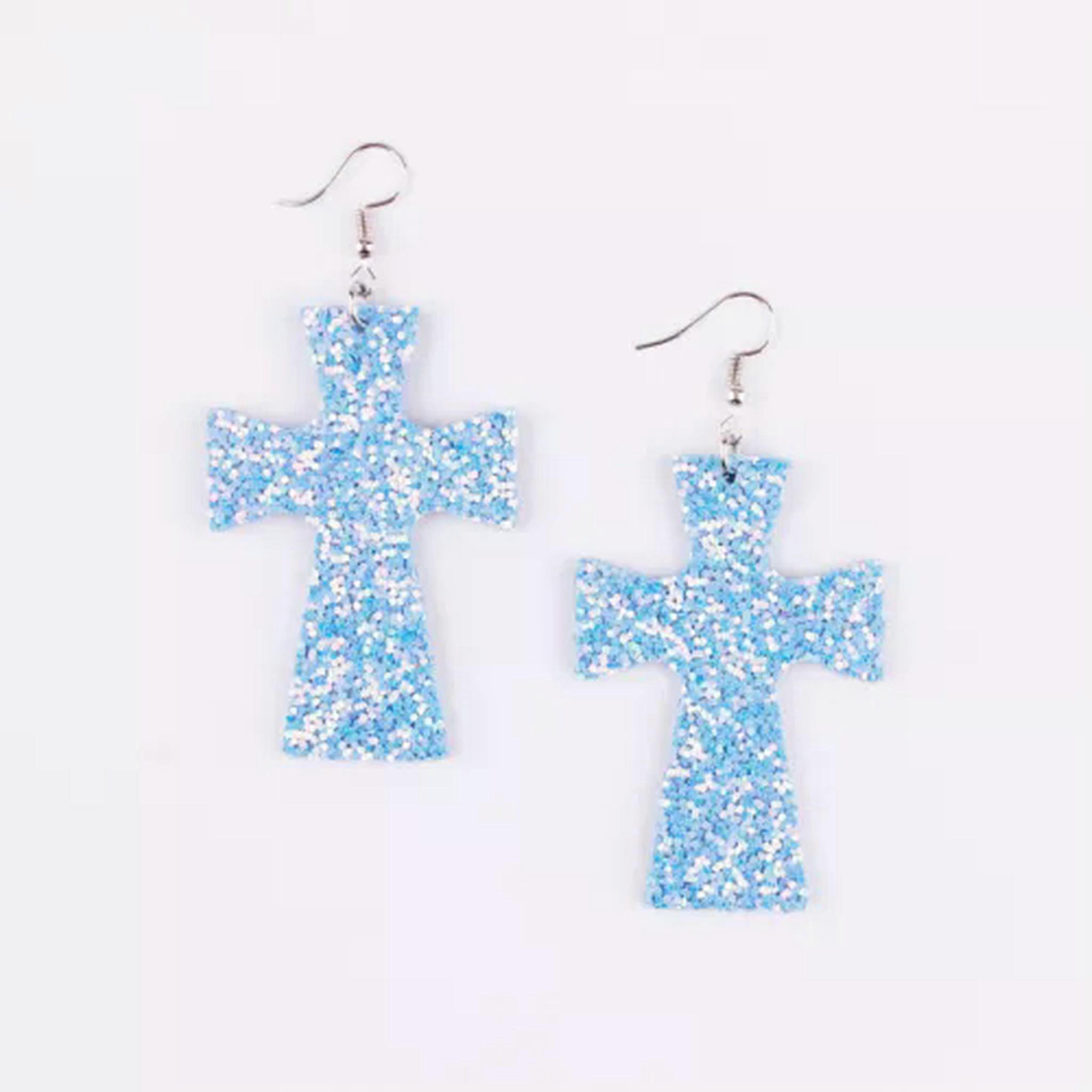 RSAMD Glitter Sequins Leather Cross Dangle Earrings for Women Classic Party Jewelry-Sky Blue