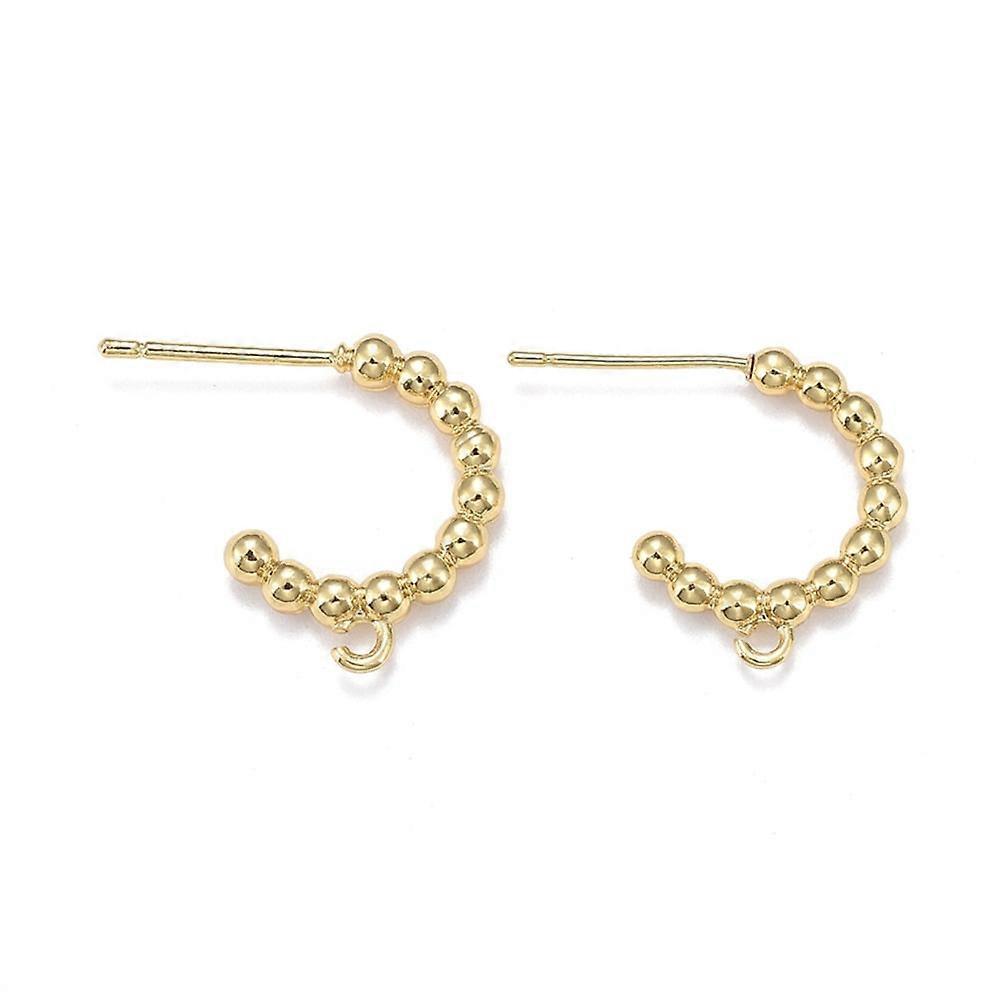 Brass Stud Earring Findings Half Hoop Earrings with Loops Long-Lasting Plated Real 18K Gold Plated
