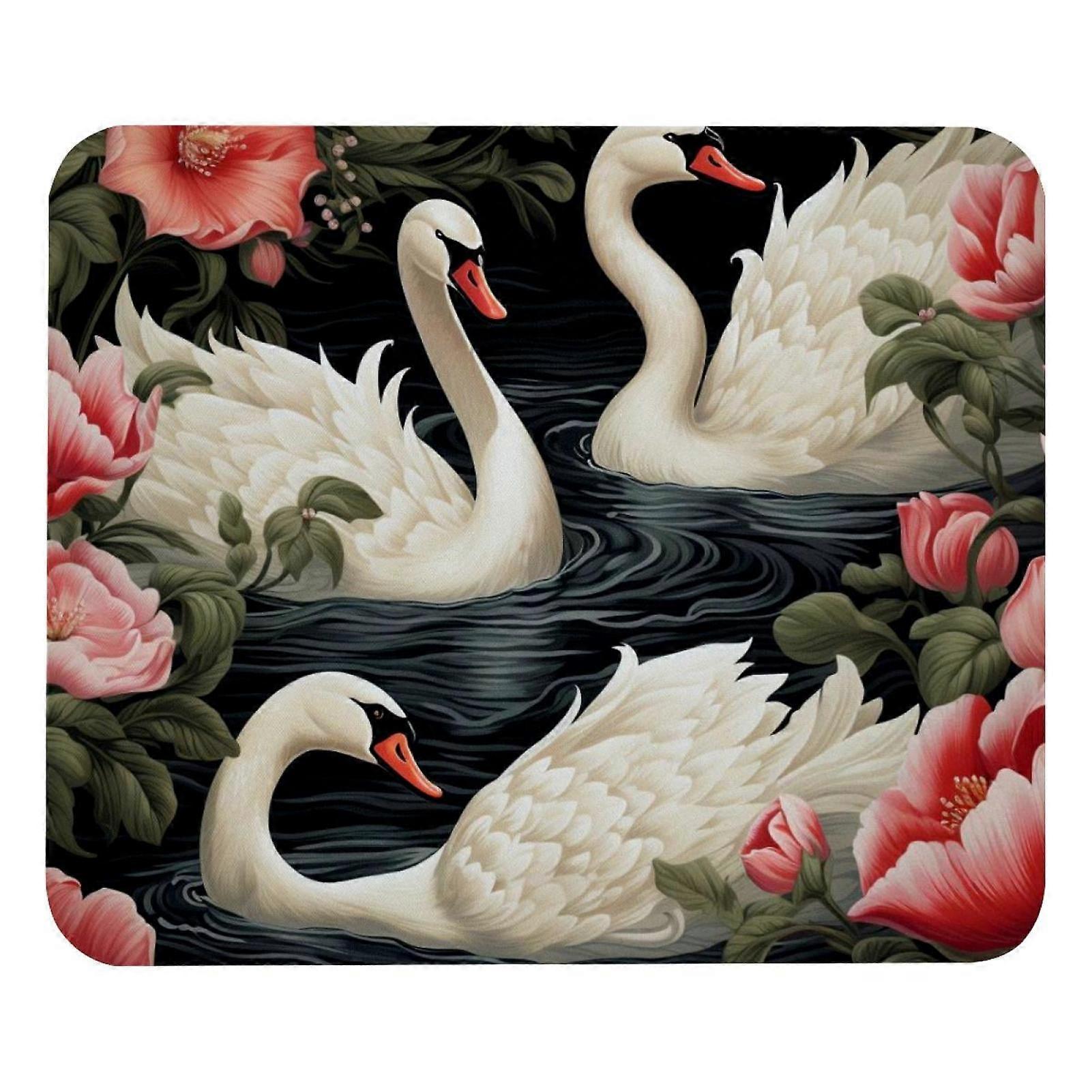 Pink Flowers Swan Mouse Pad 8.3'' x 9.8'' with Non-Slip Rubber Base, Compatible with Laptop, Computer, Gaming, Writing & Desk Use