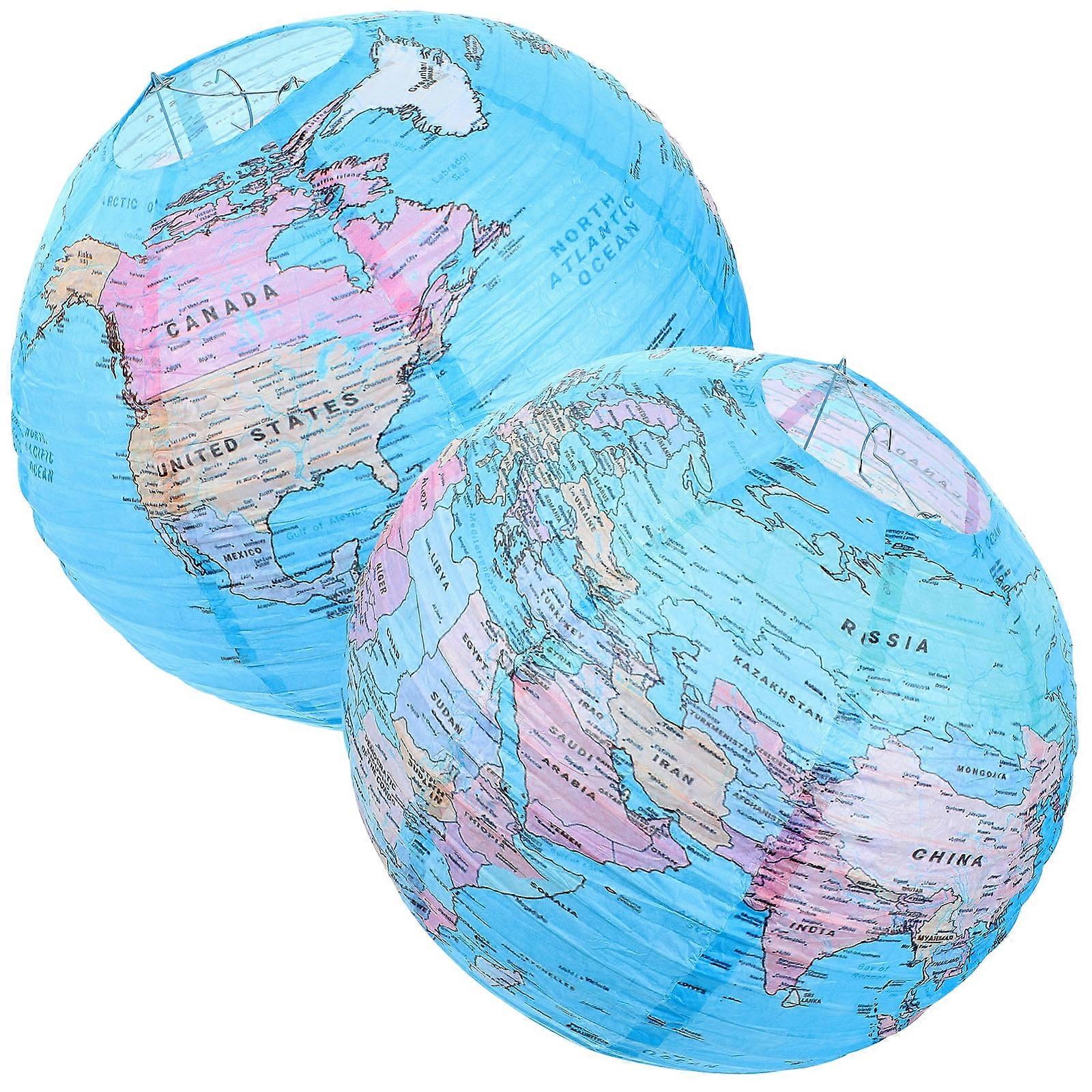 2 Pcs Lantern Earth Paper Globe Shaped Lanterns Decorations Origami Lamp Shade Travel
