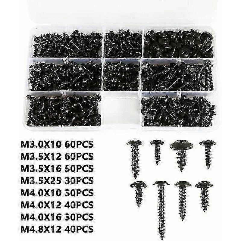 w Stainless Carbon Steel Self Tapping Screws Flat Head Wood Screws Cross-Head Fastener Kit Size: M3.0-M4.8 340pcs Black Self Drilling Sheet Metal