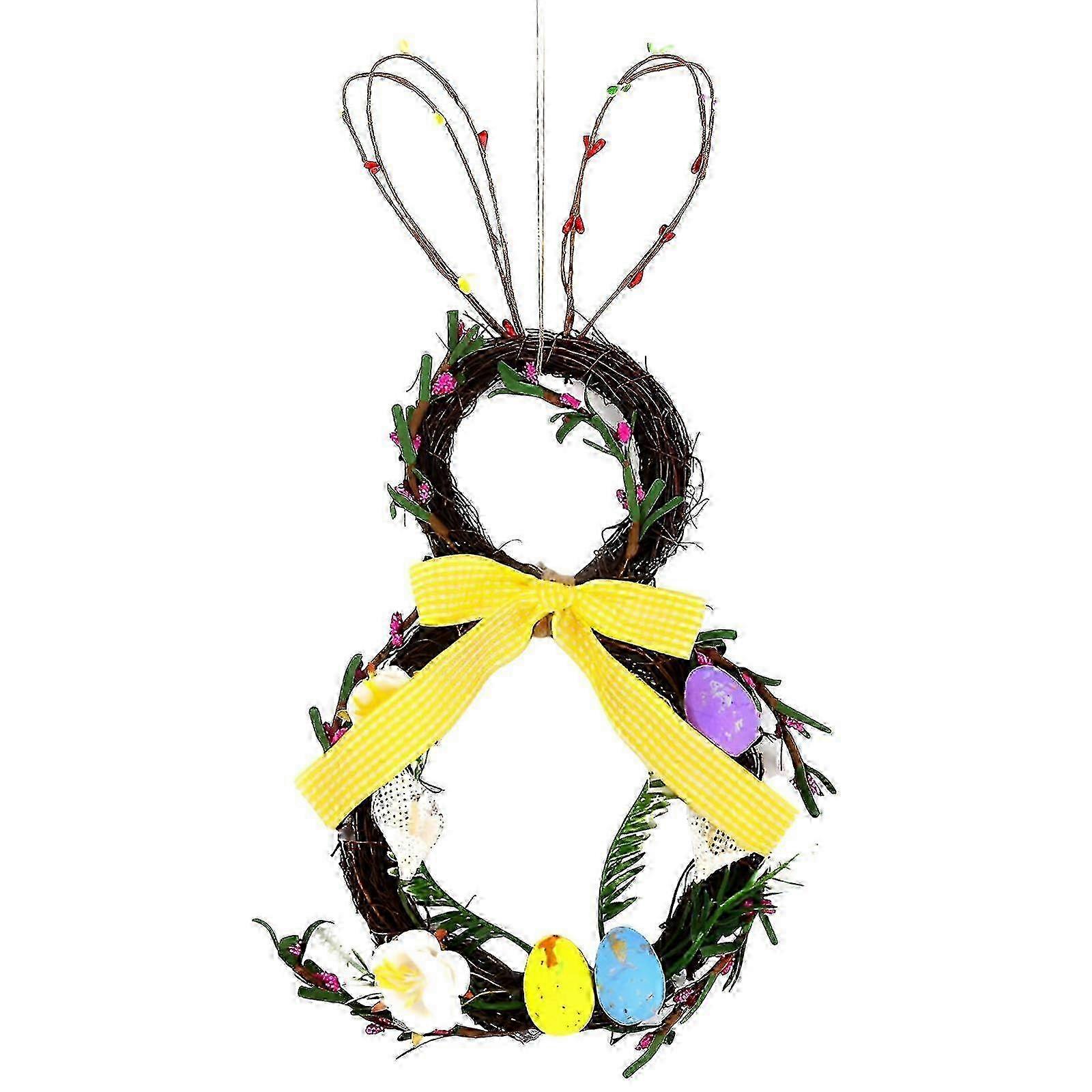 w 24 inch Easter Wreath for Front Door, Cute Bunny Wreath with Pastel Eggs Flowers and Mixed Twigs for Home Wall Decorations