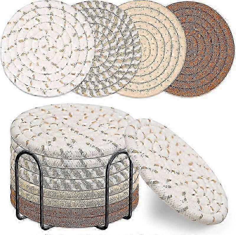 w 8 Pcs Coasters, Minimalist Cotton Woven Absorbent Coaster Set for Home Tabletop