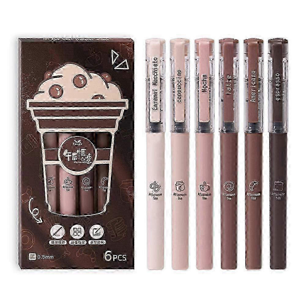 w Coffee Theme Liquid Gel Pens, 6 Pieces Cute Coffee Pens, 0.5mm Fine Point