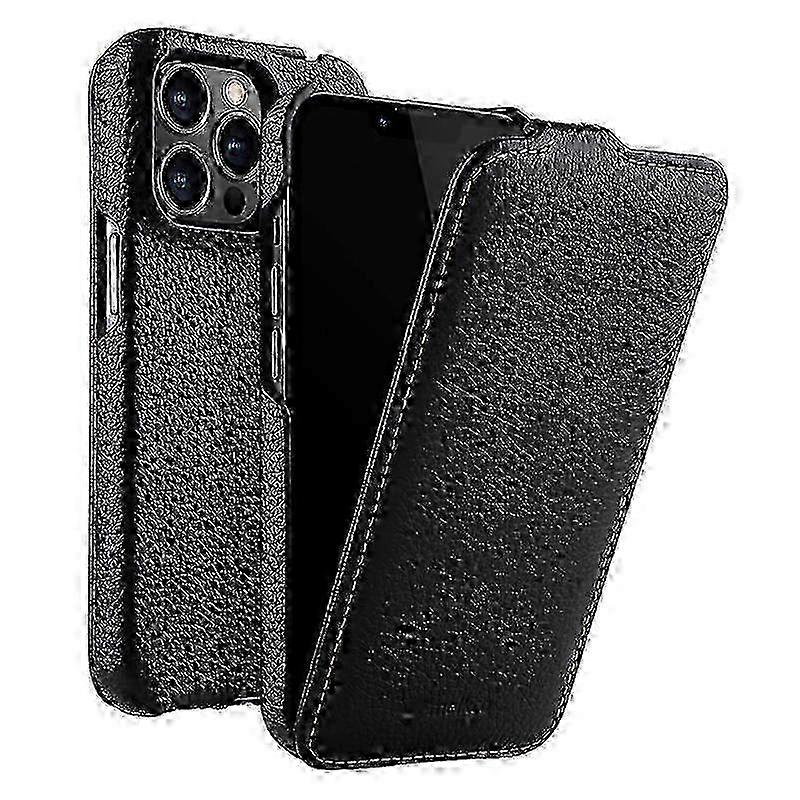 w MELKCO For 14 Pro Phone Case Genuine Cow Leather+PC Vertical Flip Cover