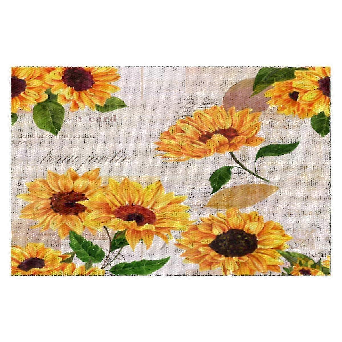w Set of 6 Heat-Resistant, Wipeable Vinyl Sunflower Placemats for Kitchen