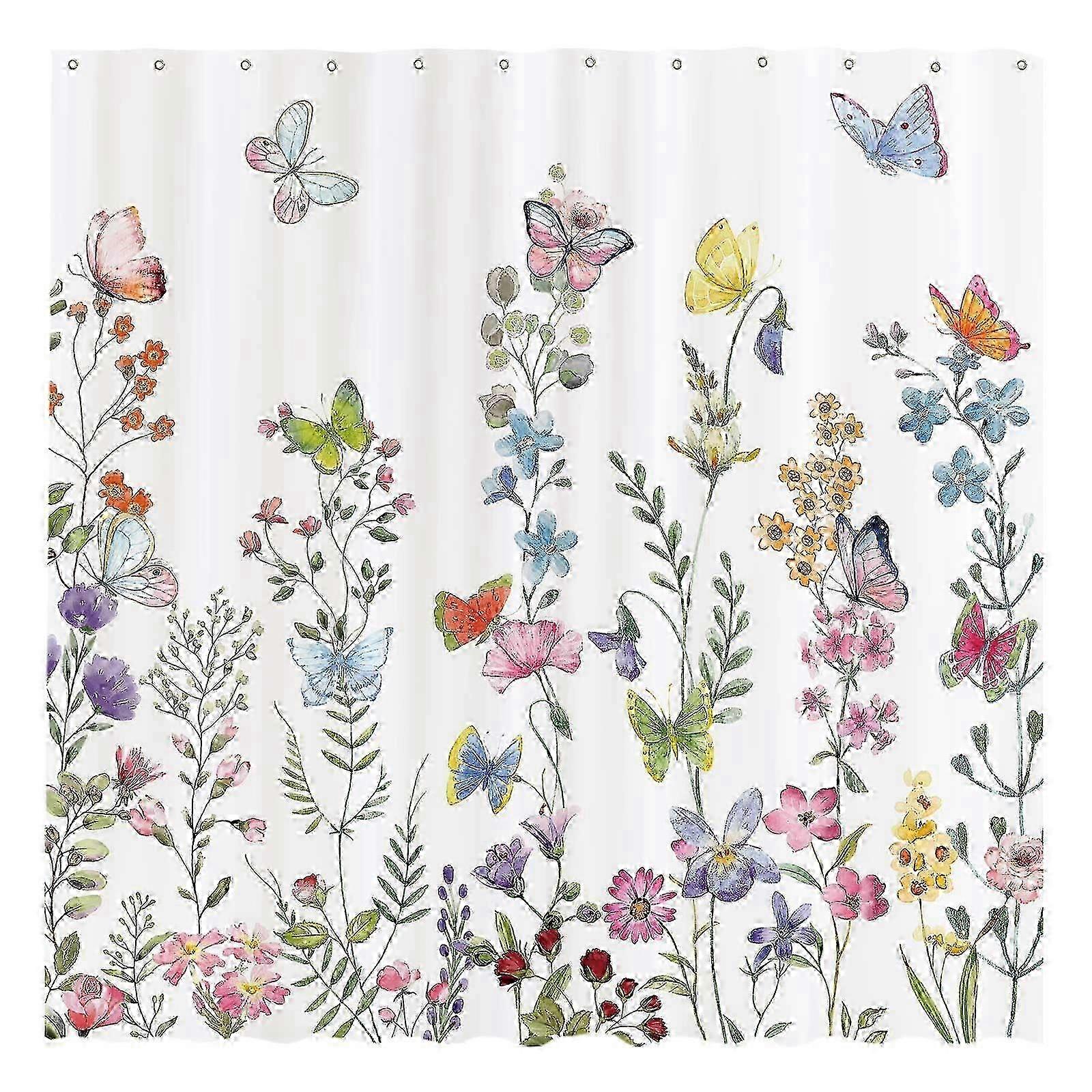 w Floral Plant Watercolor Flower Butterfly Shower Curtain for Home Bathtubs Bathroom Decor 72"x72"