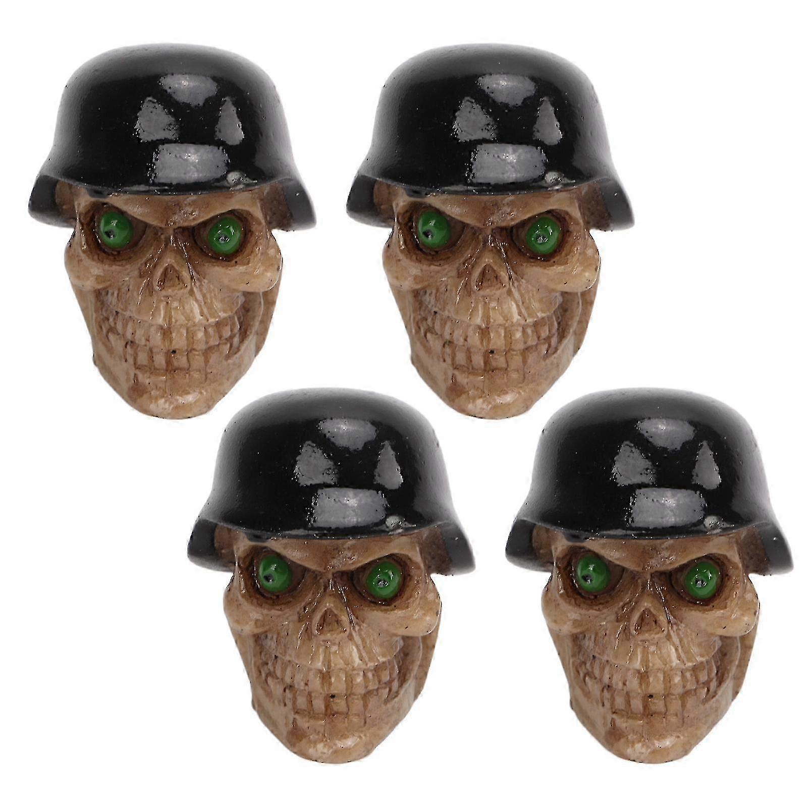 w 4Pcs/Set Helmet Skull Type Tire Valve Stem Caps with Rubber Ring Universal for Cars Bikes SUVs Trucks Bicycle MotorcycleBlack