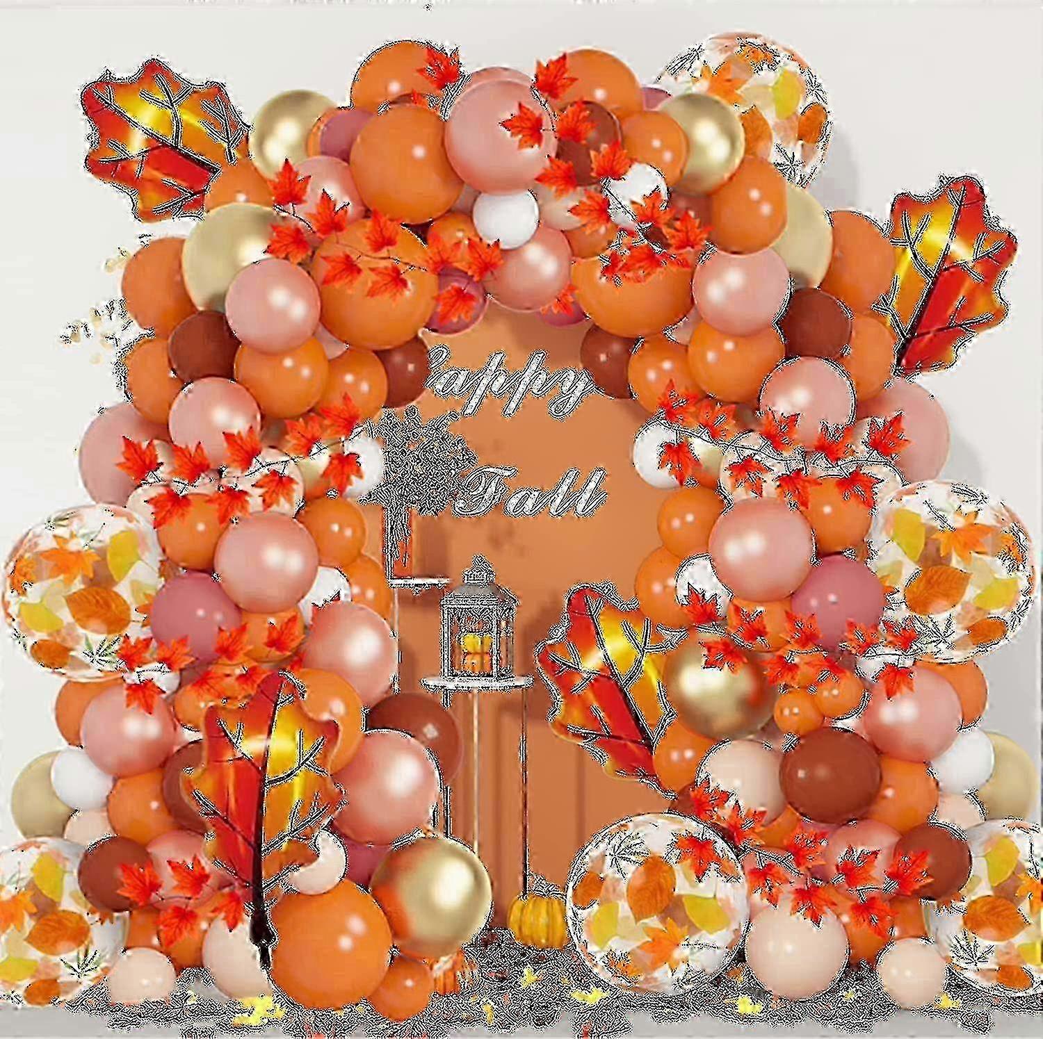 w Thanksgiving Autumn Balloon Garland with Artificial Maple Leaves 6.5ft