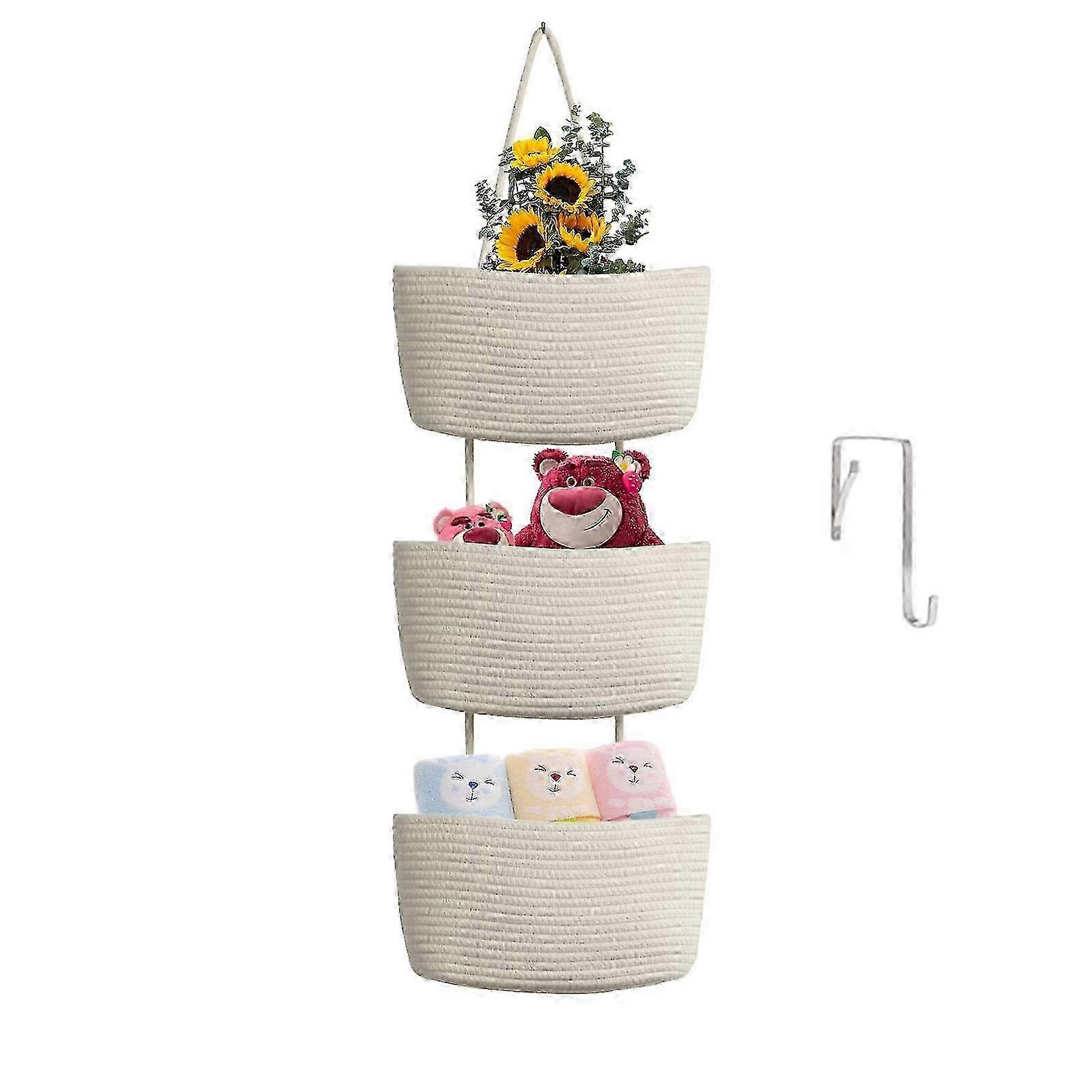 w 3-Tier Woven Cotton Hanging Baskets for Home & Garden Decor